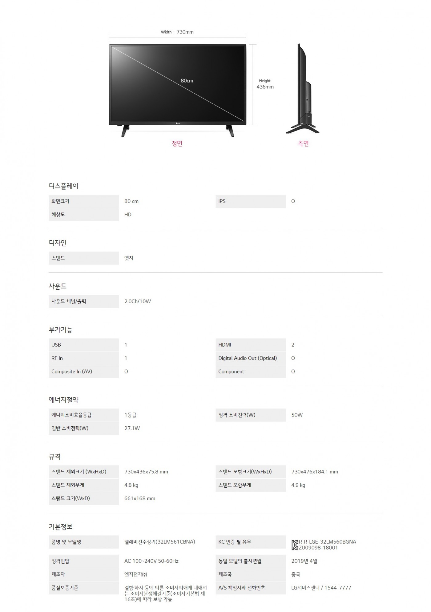 화면크기 : 80 cm