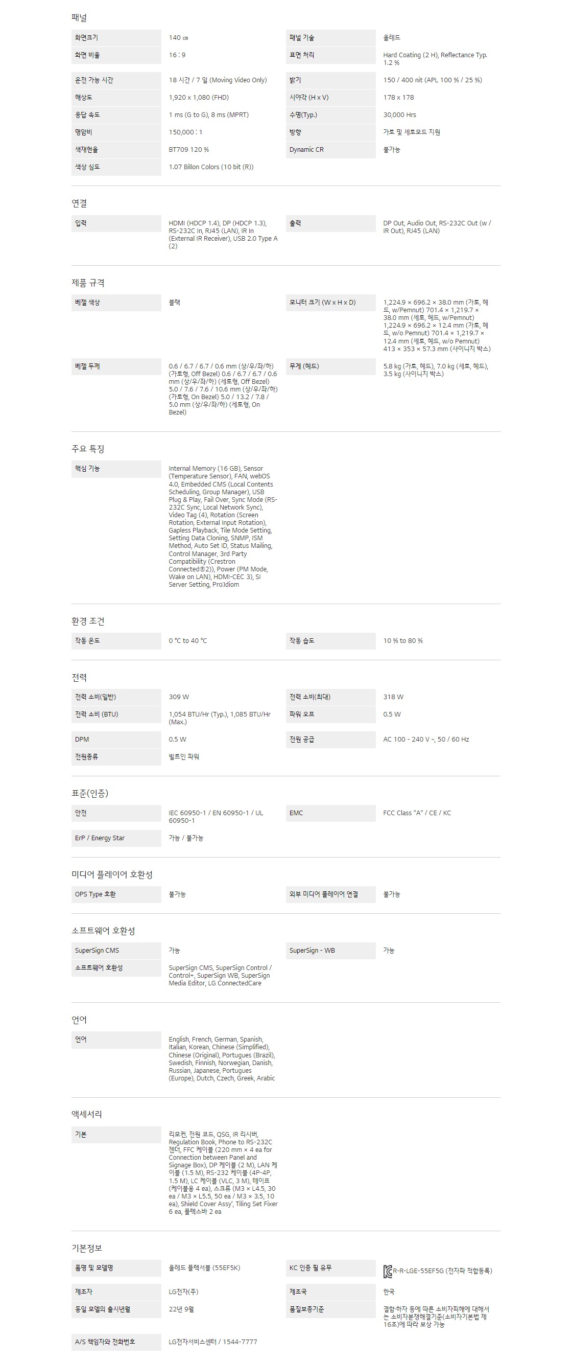 화면 크기 : 140cm