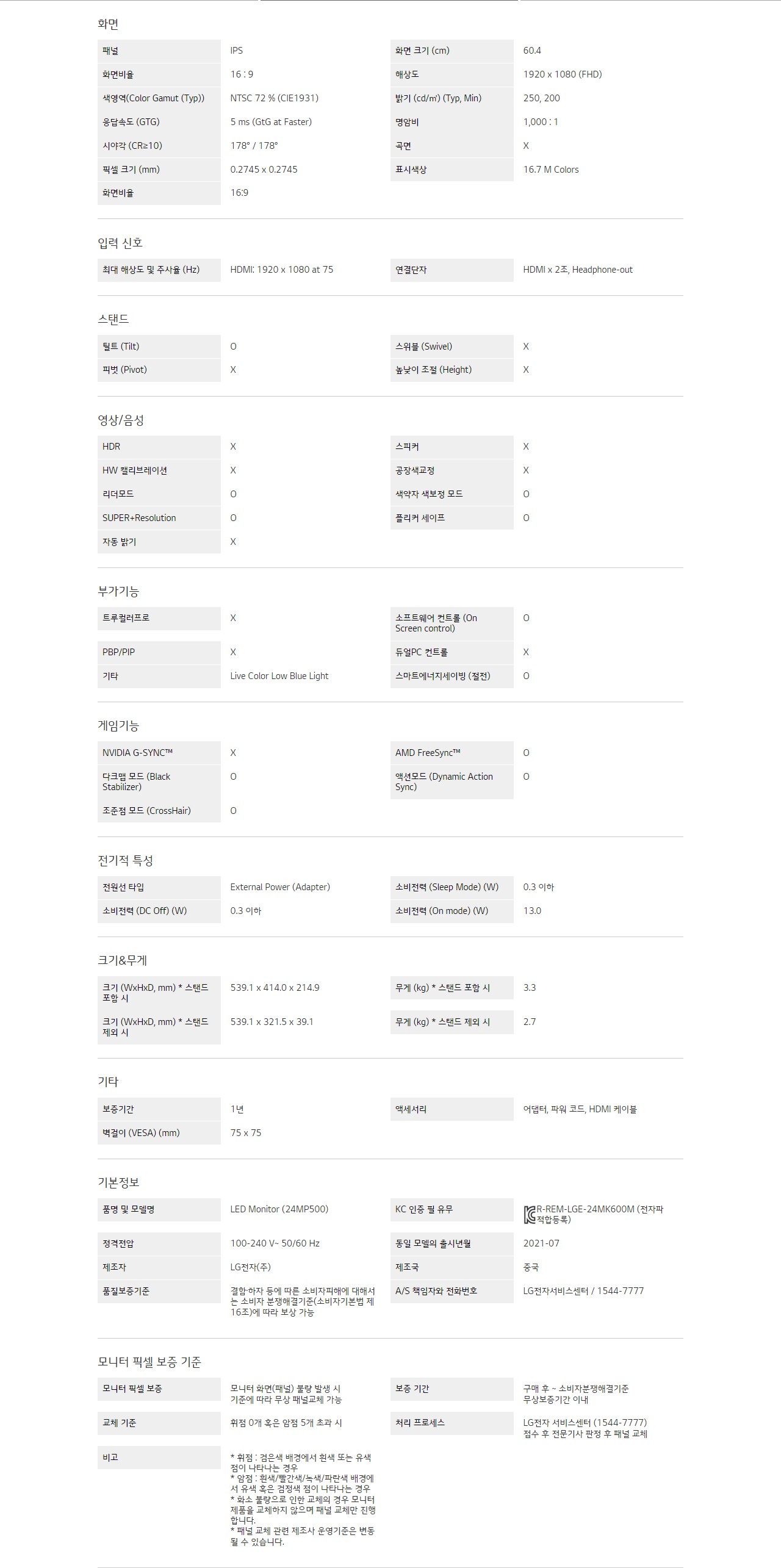제품스펙