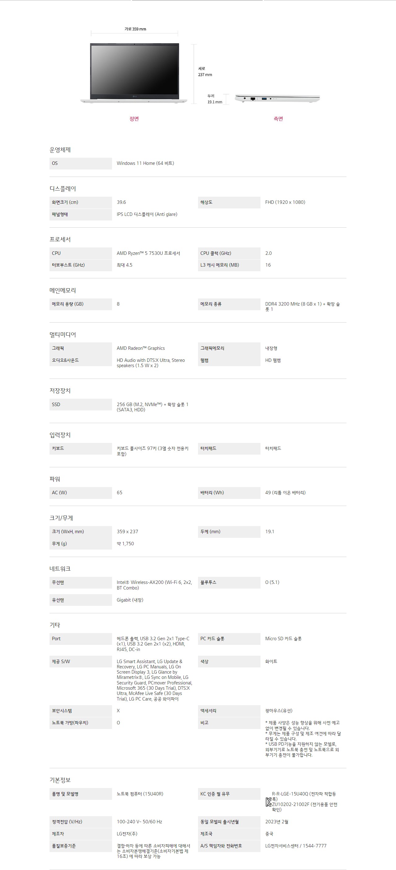 PC/모니터 LG 울트라 PC 15U40R-GR50ML