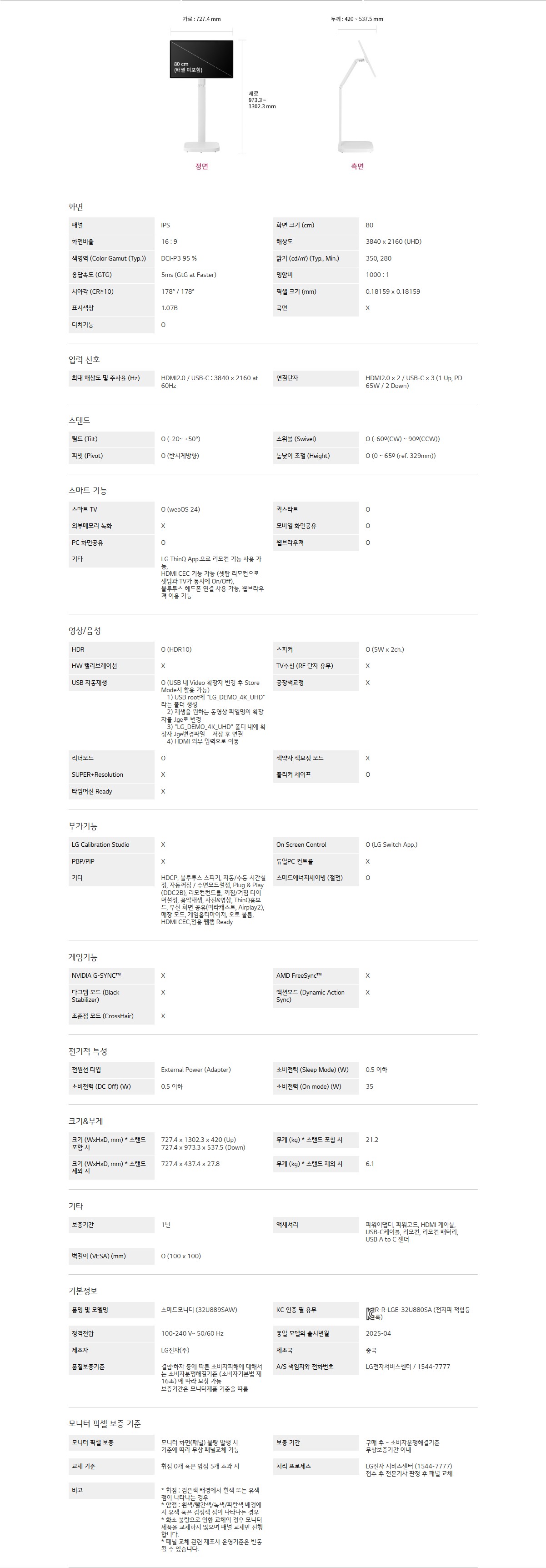 화면 크기 (cm) : 80
