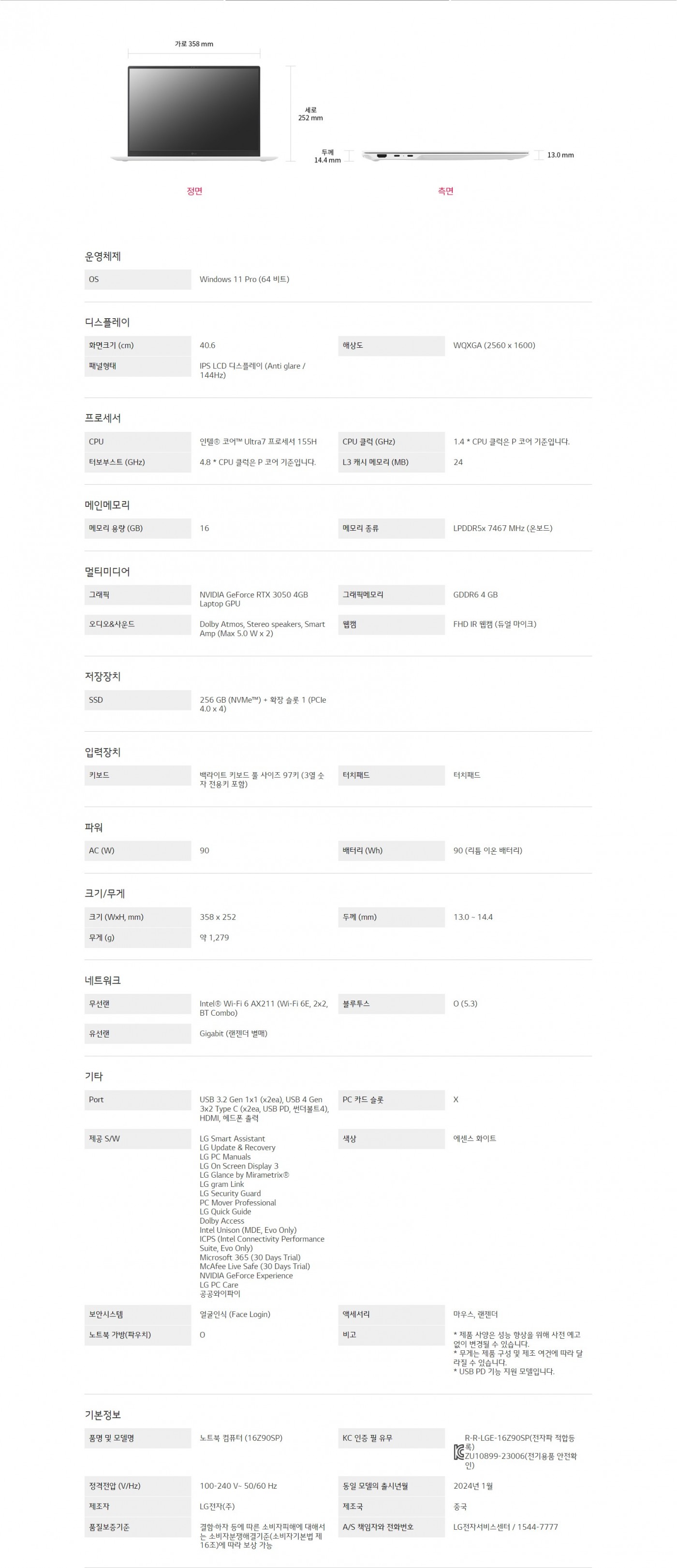 최경량 : 16형(40.6cm) 외장그래픽 탑재 노트북 중 최경량