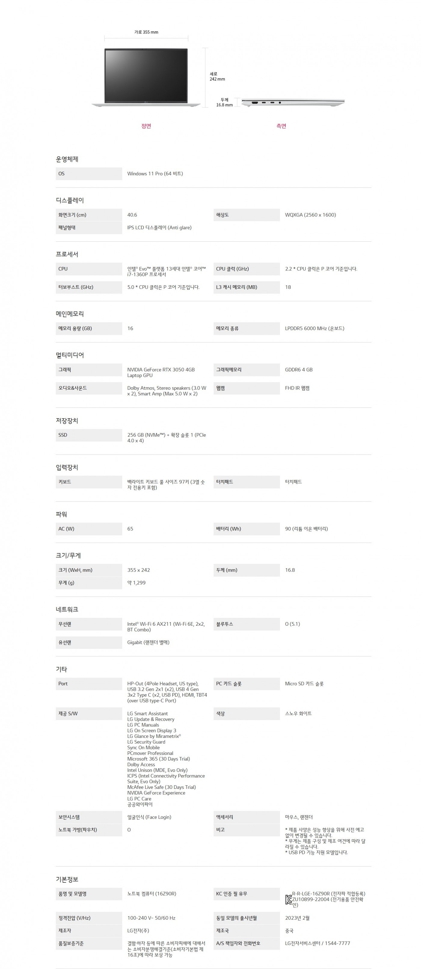 OS:WINDOWS 11 PRO (64 비트) CPU:인텔® EVO™ 플랫폼 13세대 인텔® 코어™ I7-1360P 프로세서 SSD:256 GB (NVME™) + 확장 슬롯
