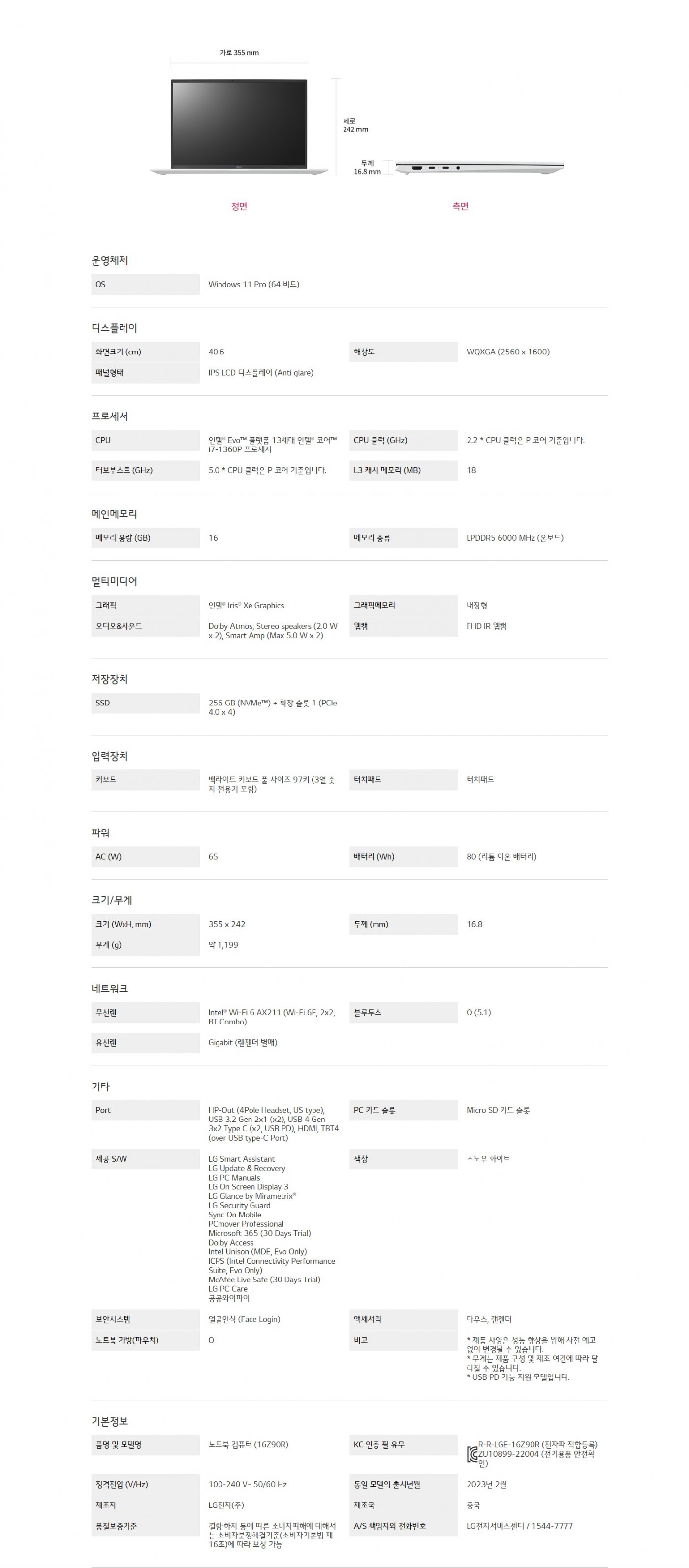 PC/모니터 LG 그램 40.6cm 16Z90R-GP76ML