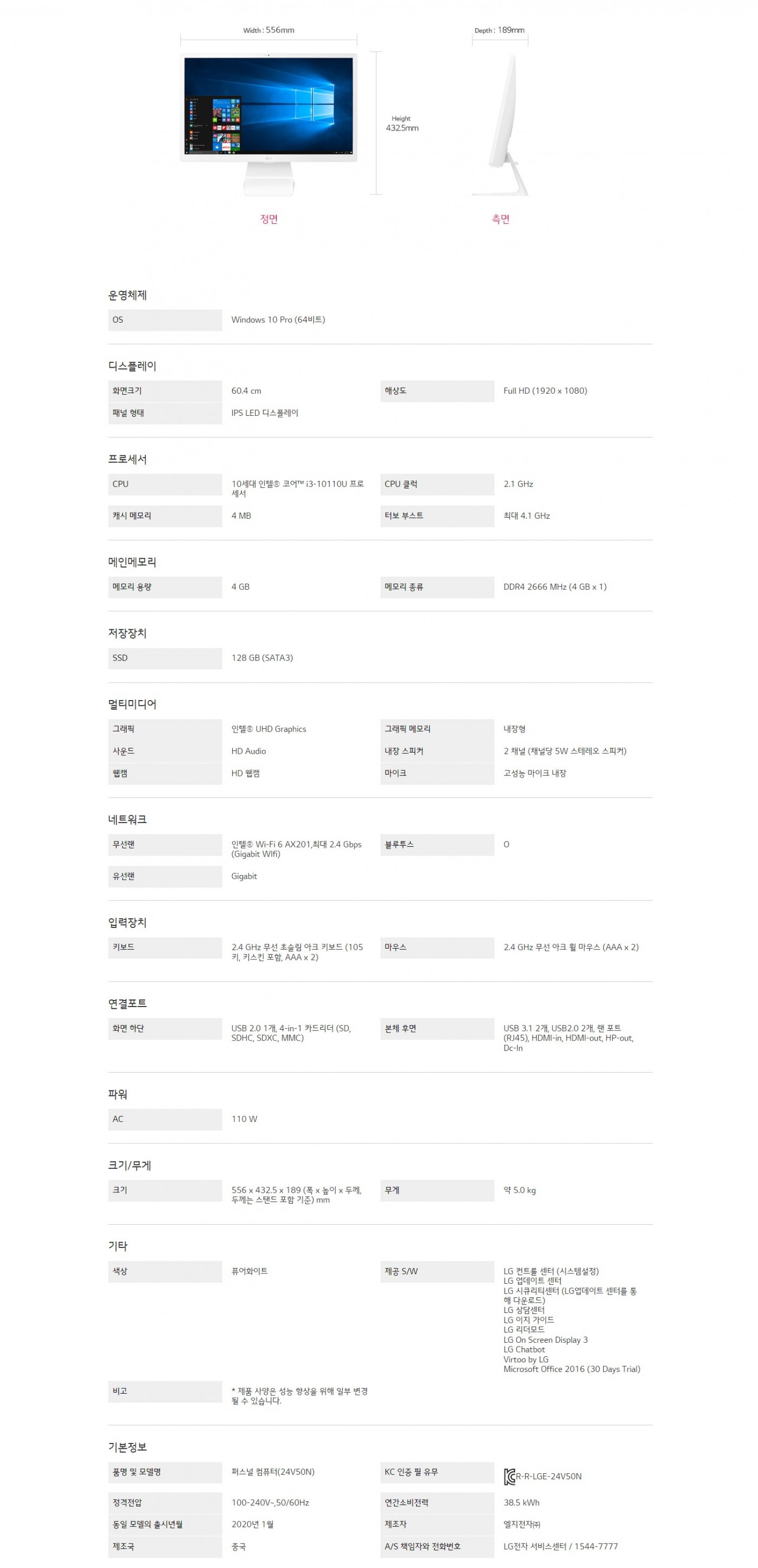 CPU : 10세대 인텔® 코어™ i3-10110U 프로세서