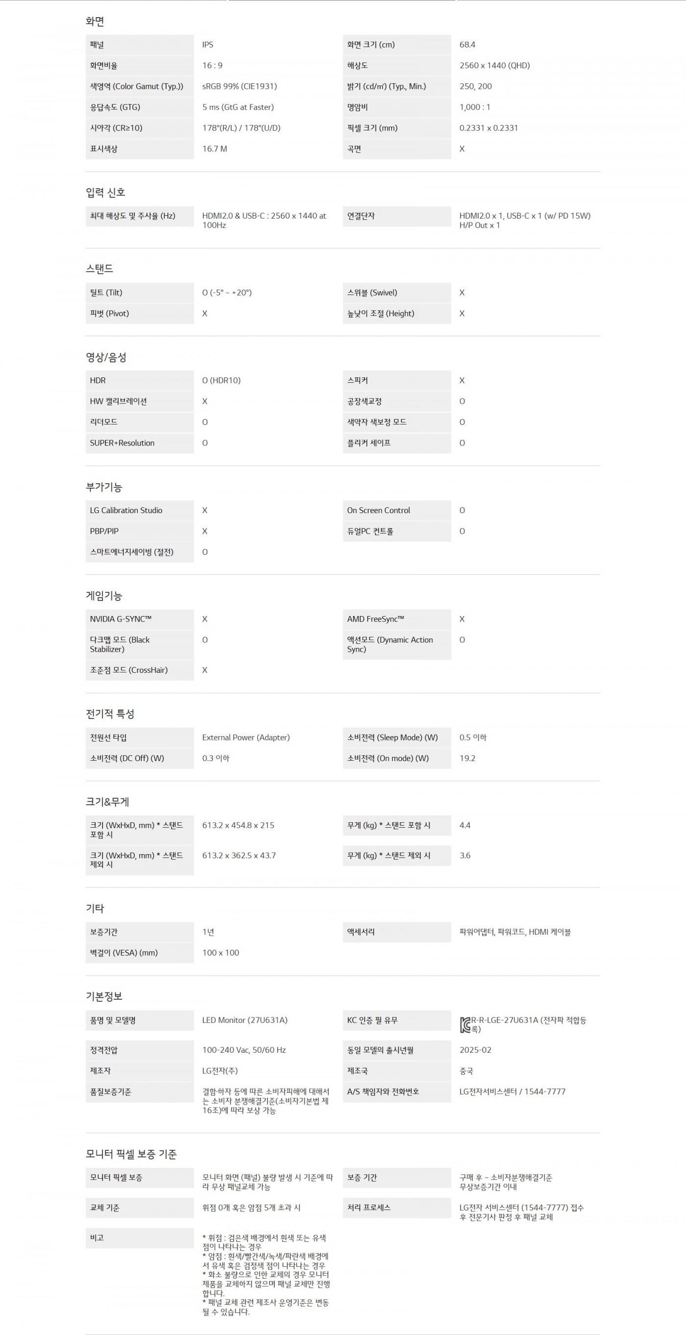 제품스펙