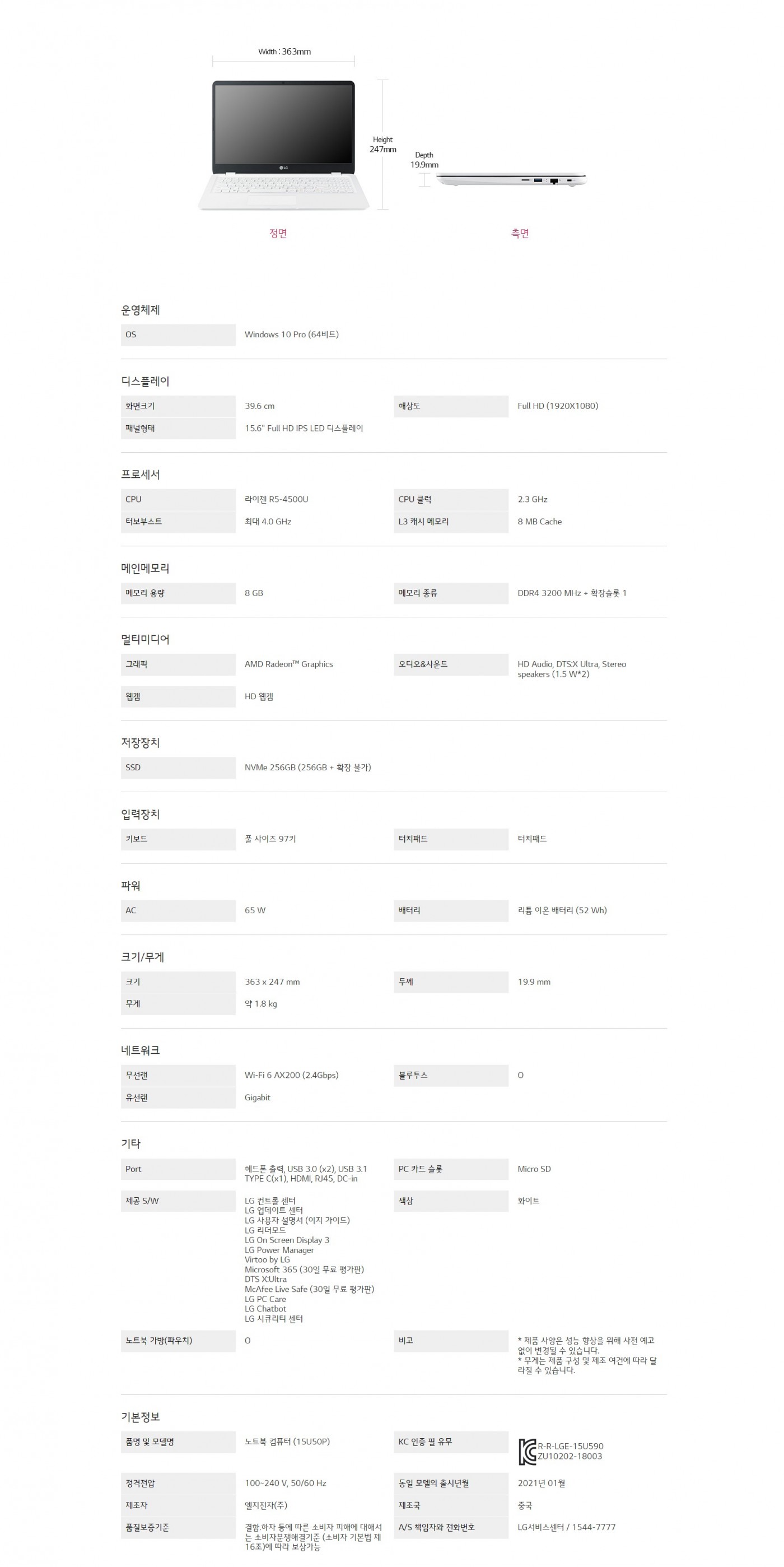 OS : Windows 10 Pro (64비트)CPU : 라이젠 R5-4500USSD : NVMe 256GB (256GB + 확장 불가)