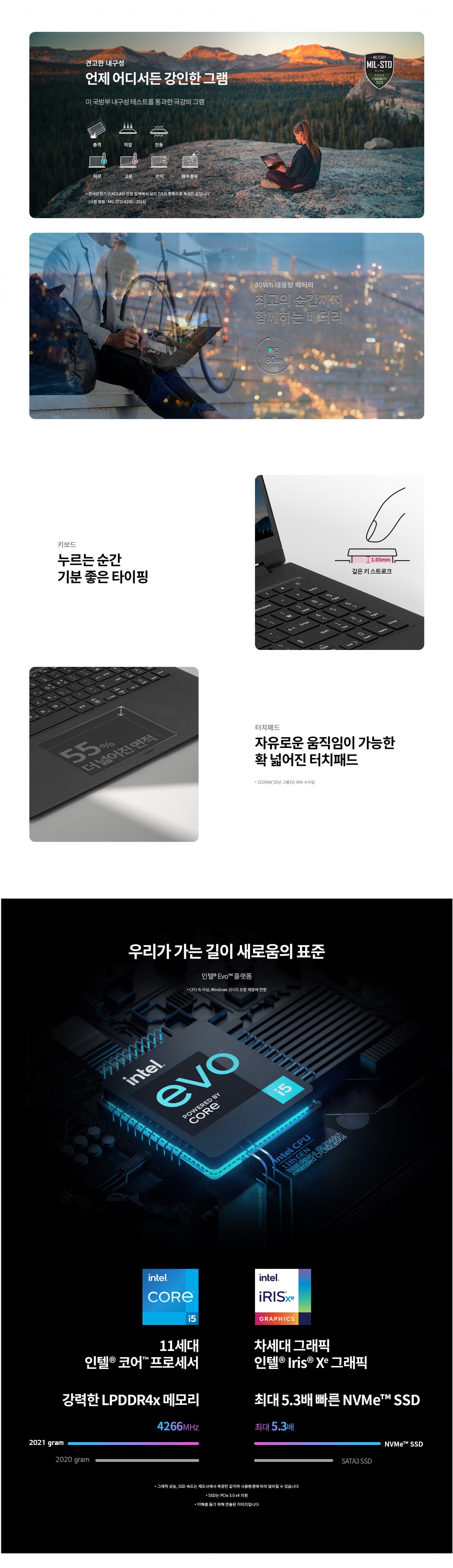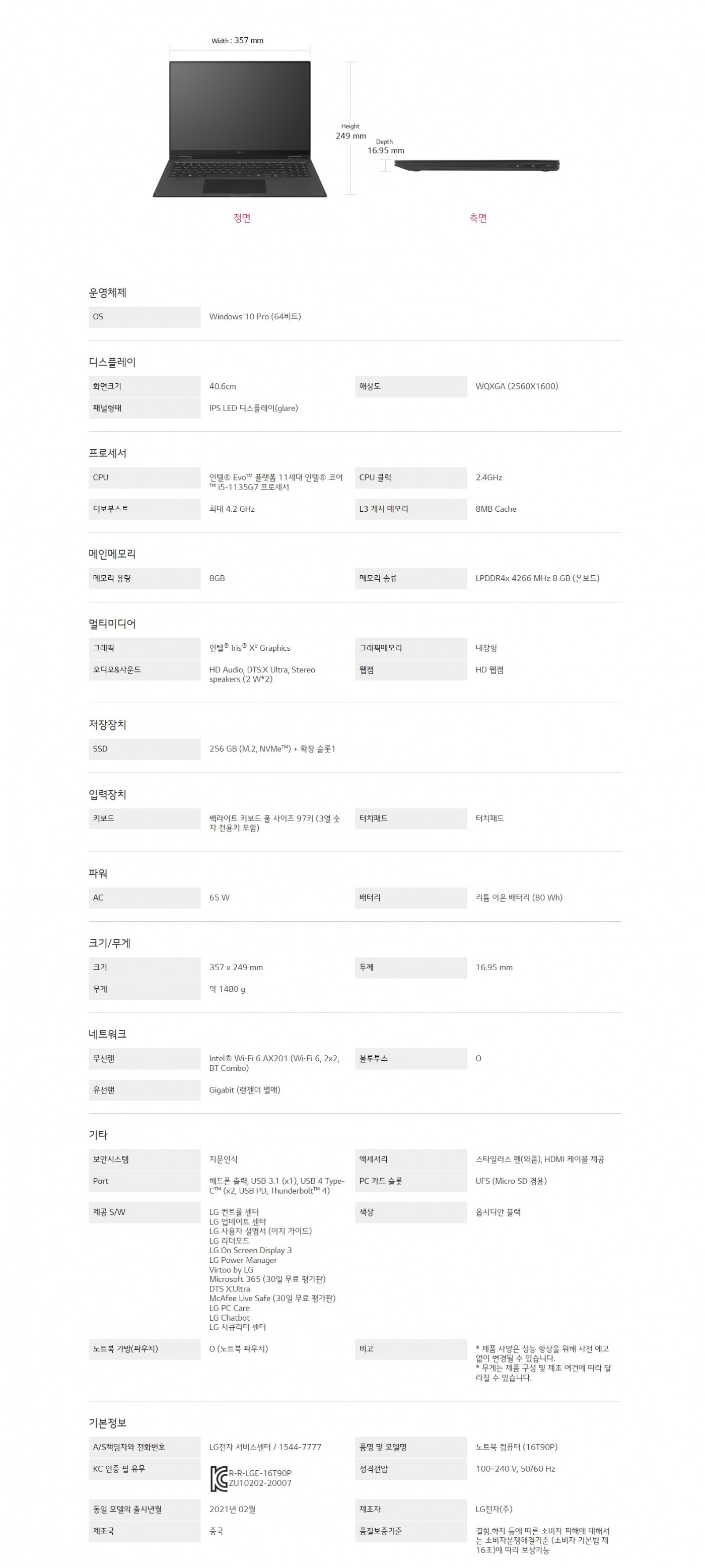 OS : Windows 10 Pro (64비트)CPU : 인텔® Evo™ 플랫폼 11세대 인텔® 코어™ i5-1135G7 프로세서SSD : 256 GB (M.2, NVMe™