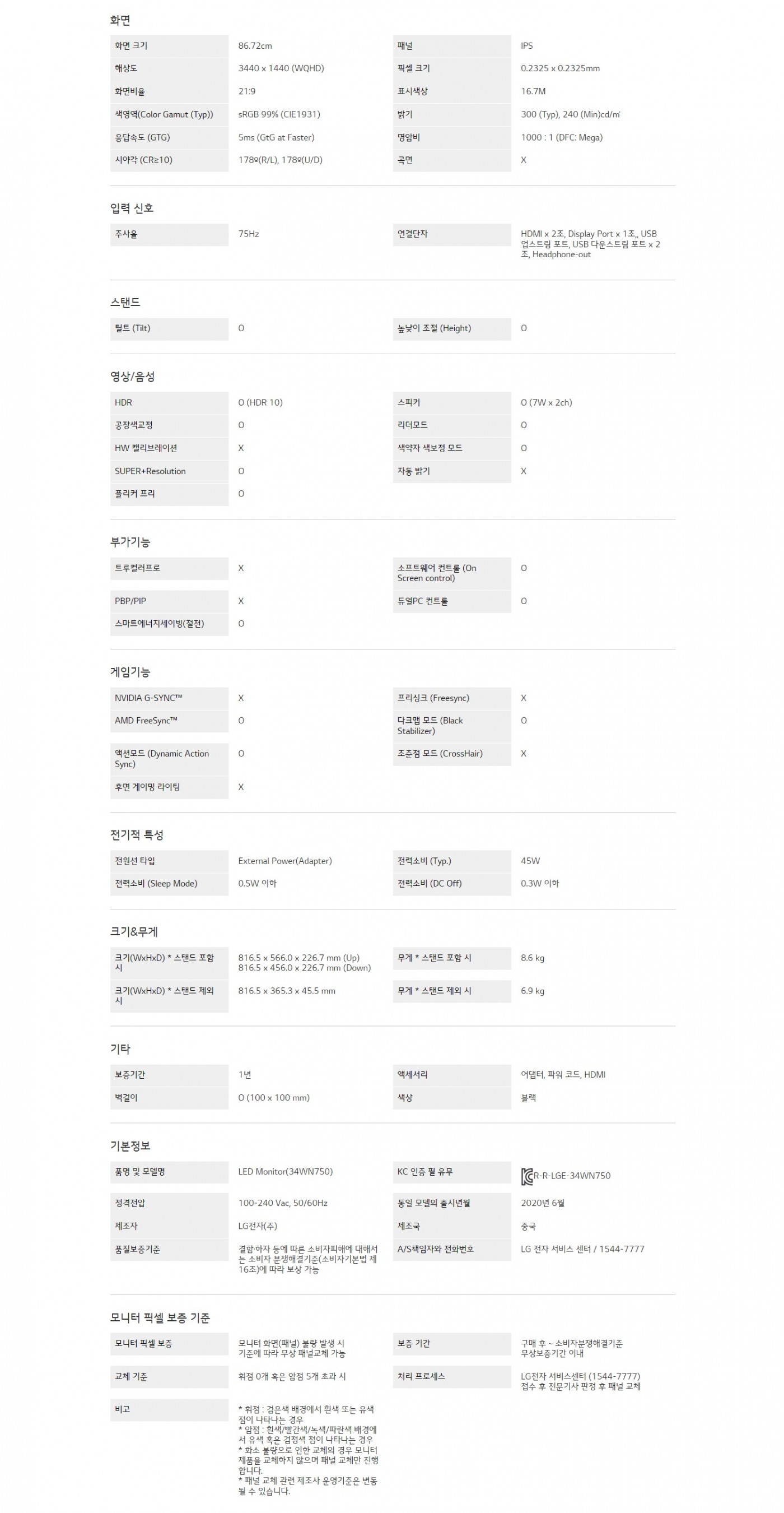 해상도 : 3440 x 1440 (WQHD)