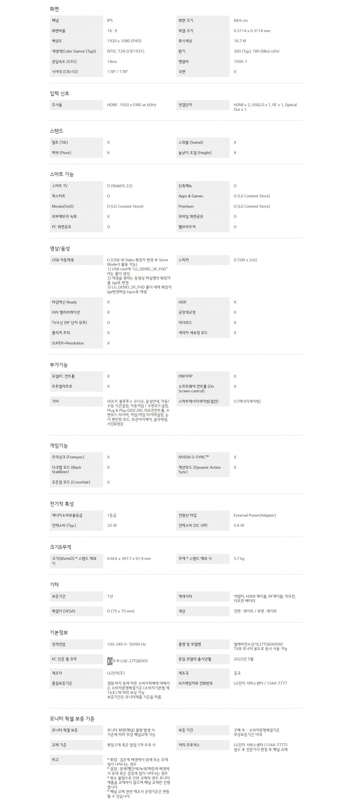 화면 크기 : 68.6 cm