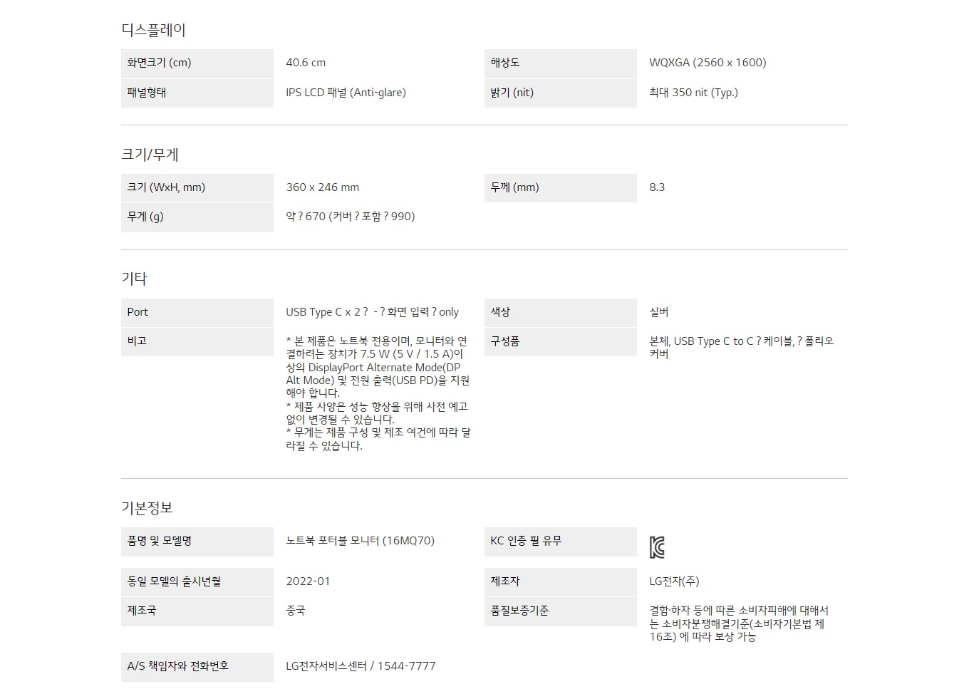 무게 (g) : 약 670 (커버 포함 990)