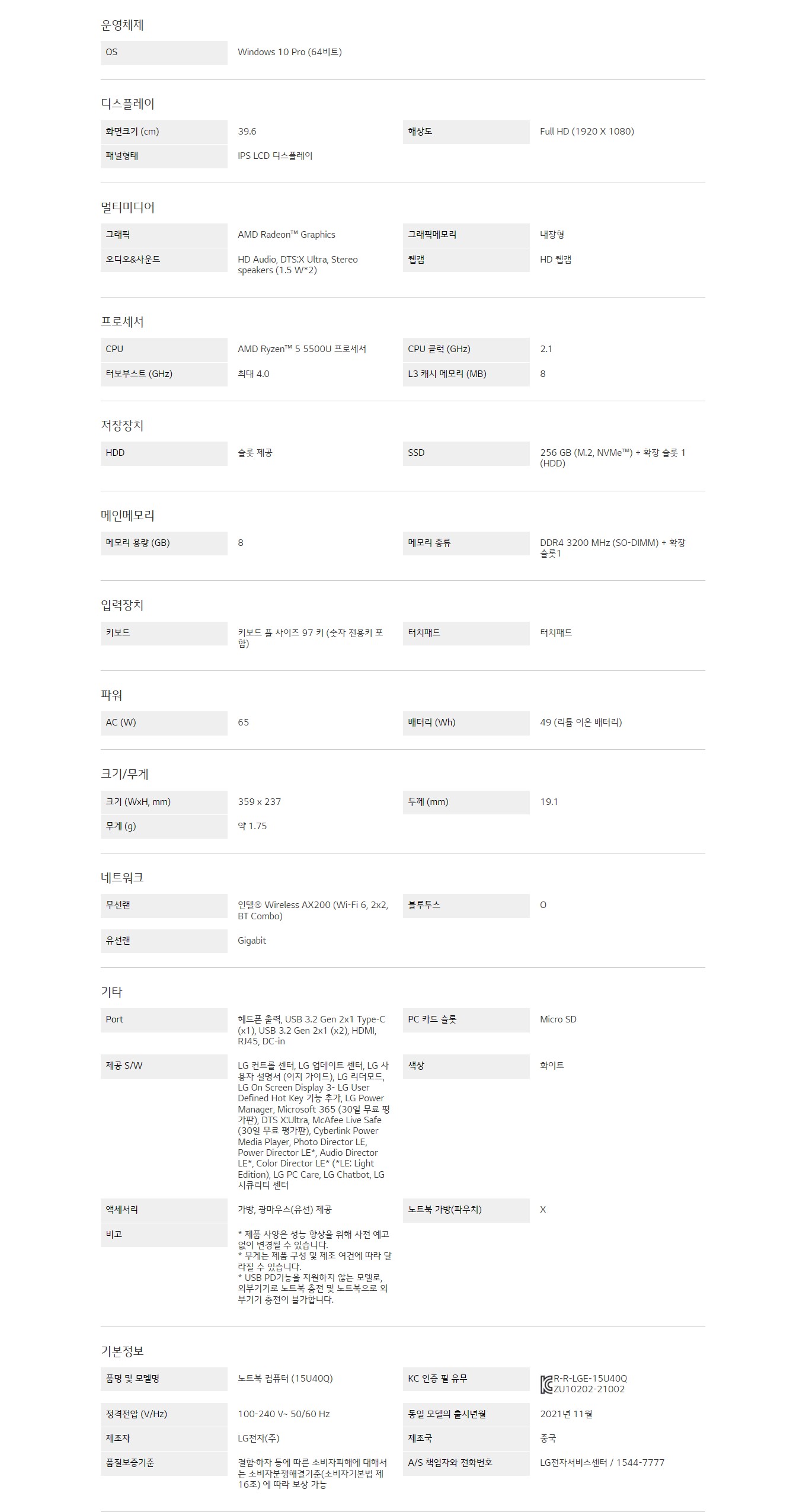CPU : AMD Ryzen™ 5 5500U 프로세서