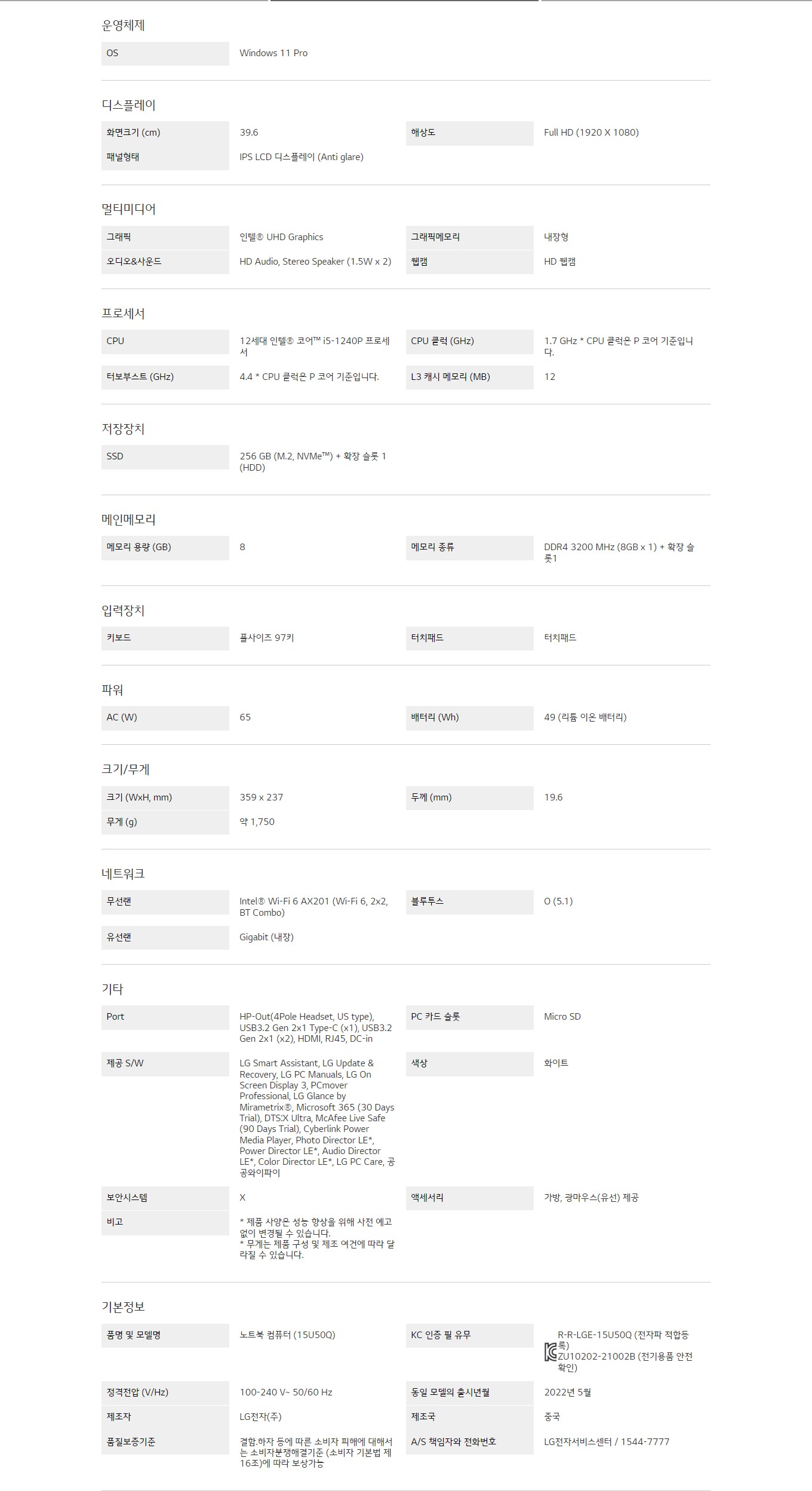 CPU : 12세대 인텔® 코어™ i5-1240P 프로세서