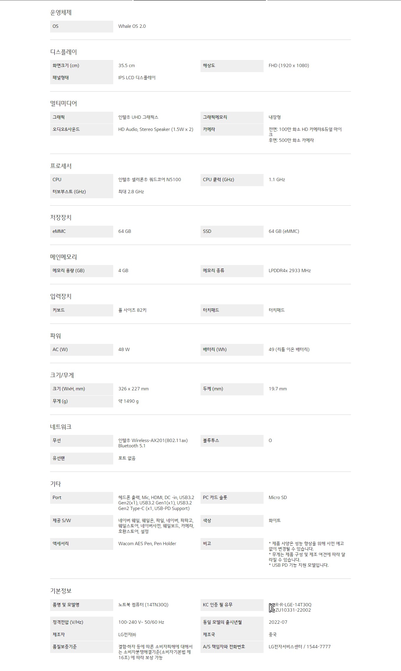 CPU : 인텔® 셀러론® 쿼드코어 N5100