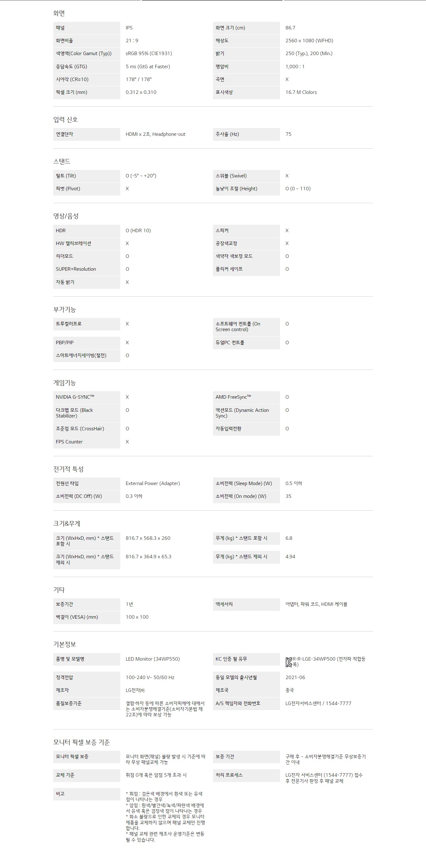 화면 크기 (cm) : 86.7