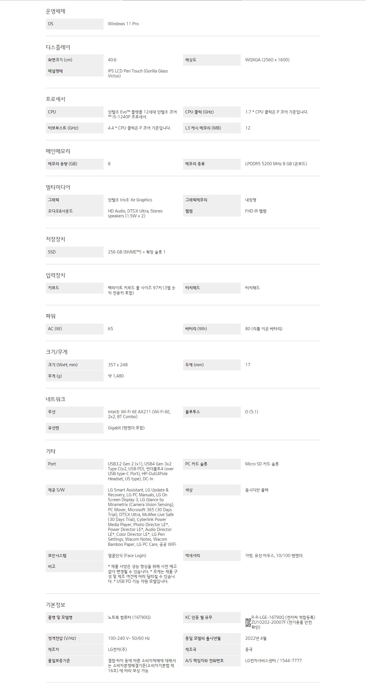 제품스펙