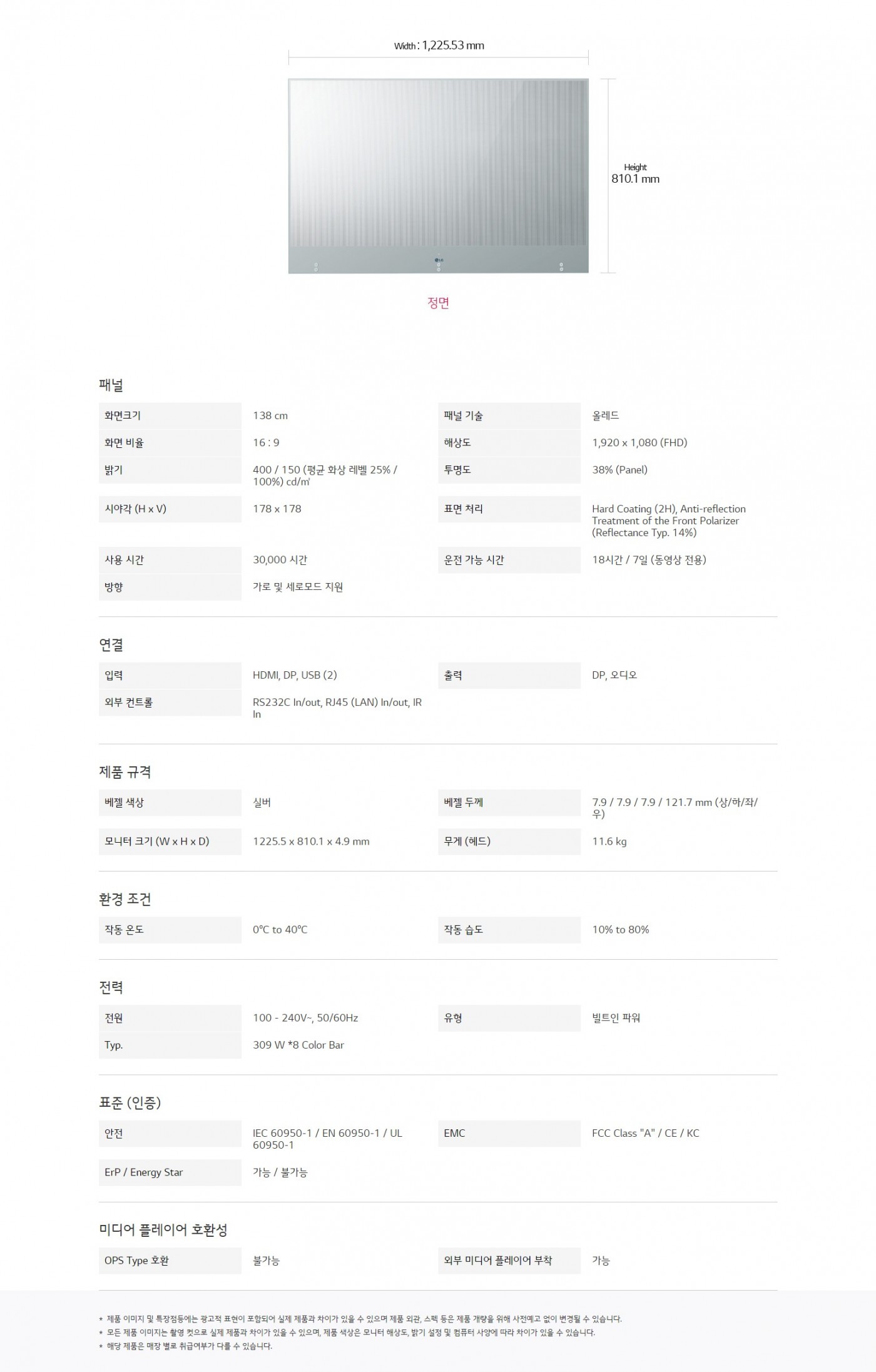 밝기 : 400 / 150 (평균 화상 레벨 25% / 100%) cd/㎡