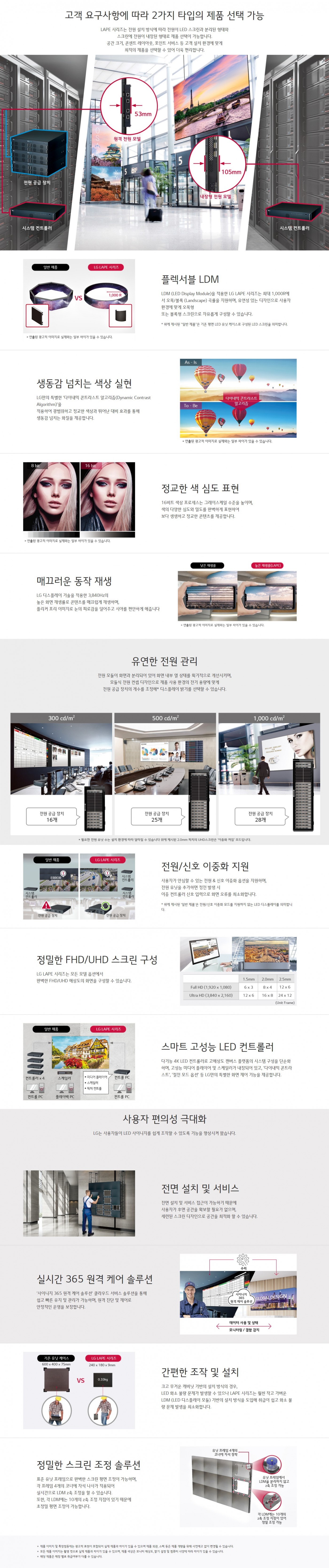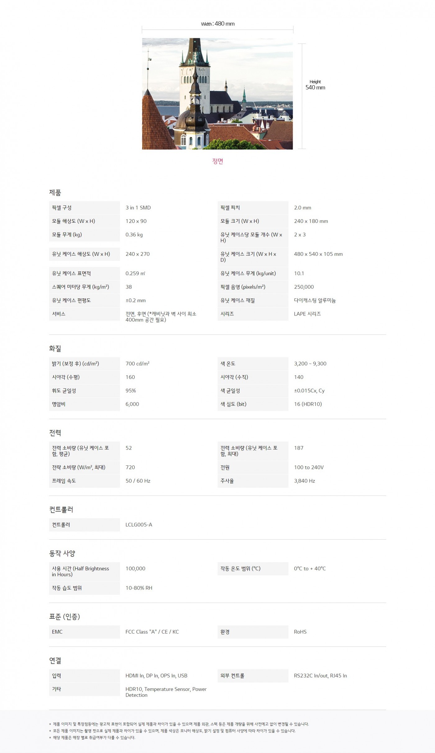 유닛 케이스 크기 (W x H x D) : 480 x 540 x 105 mm밝기 (보정 후) (cd/m²) : 700 cd/m²시리즈 : LAPE 시리즈