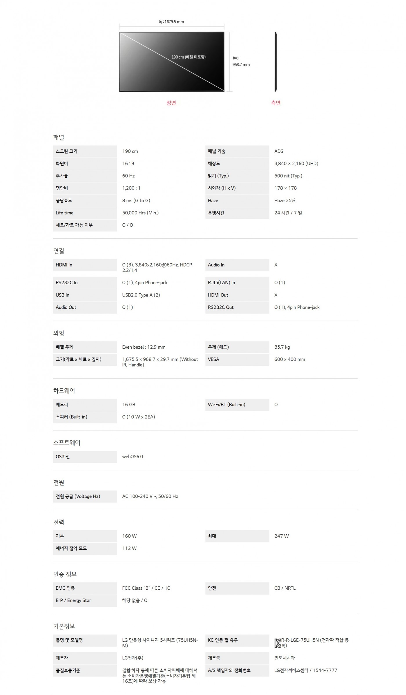 LG 단독형 사이니지 5시리즈