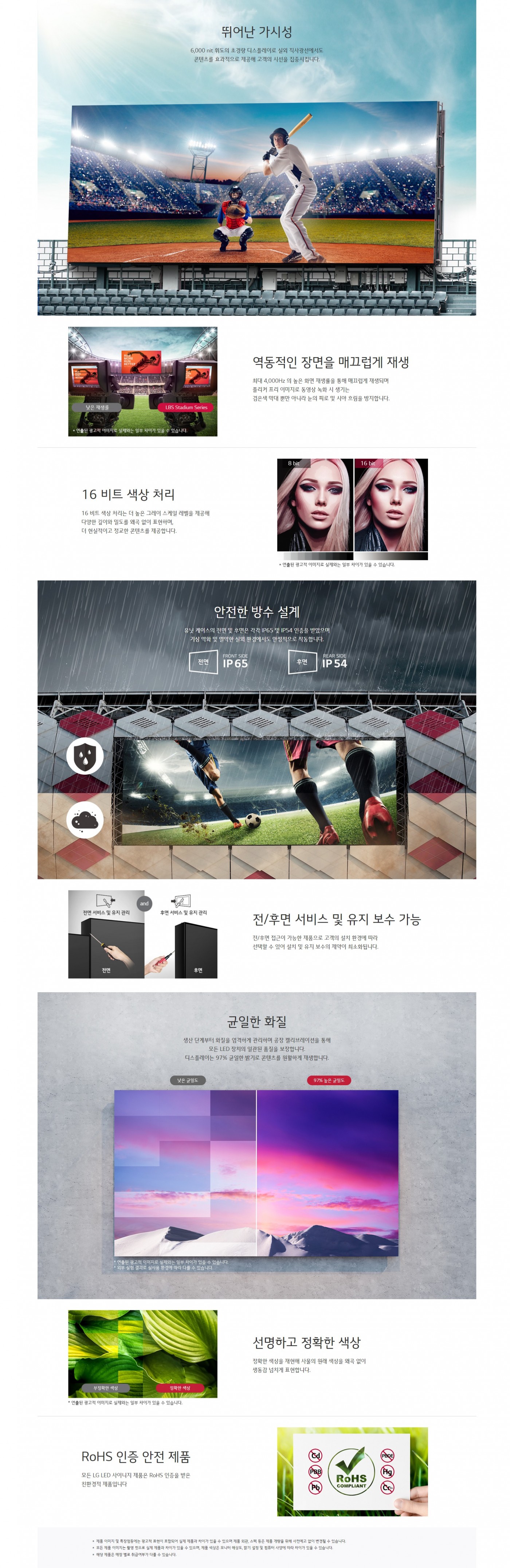 유닛 케이스 크기 (W x H x D) : 1,536 x 1,536 x 222 mm밝기 (보정 후) (cd/m²) : 6,000 cd/m²시리즈 : LBS 스타디움 시리즈