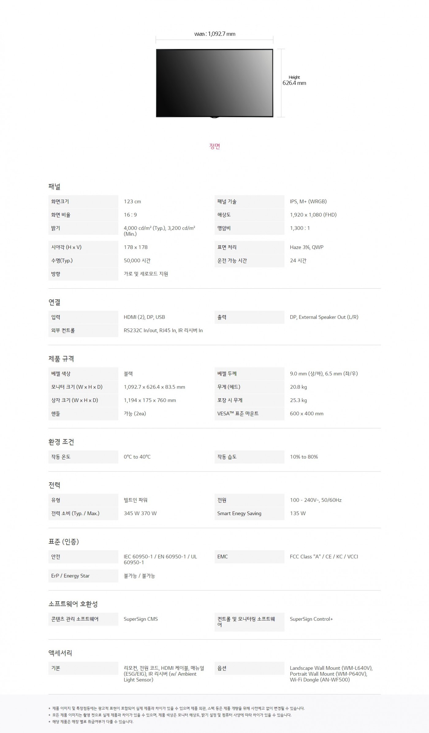 밝기 : 4,000 cd/m² (Typ.), 3,200 cd/m² (Min.)