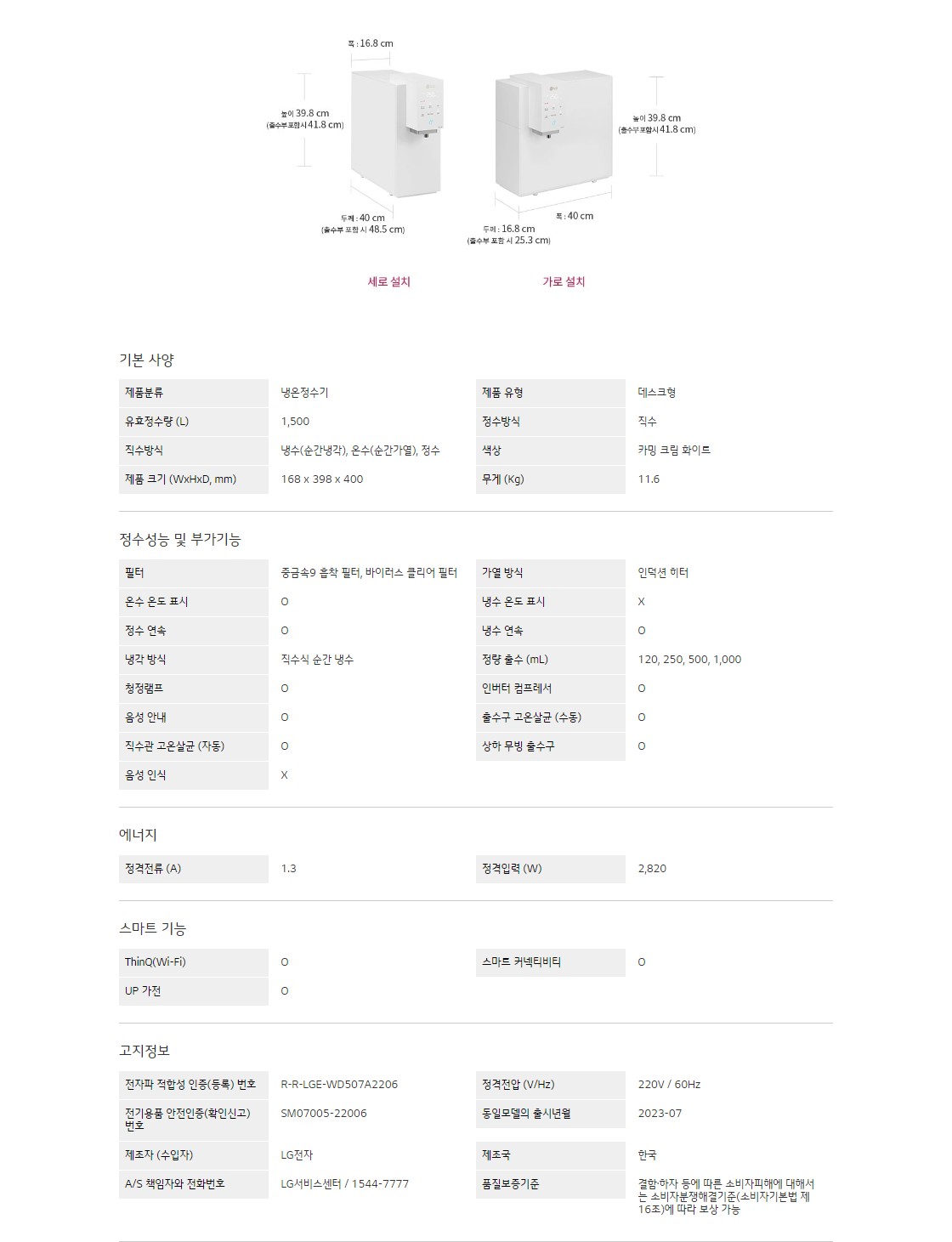 LG 퓨리케어 오브제컬렉션 정수기(맞춤 출수, 냉온정)