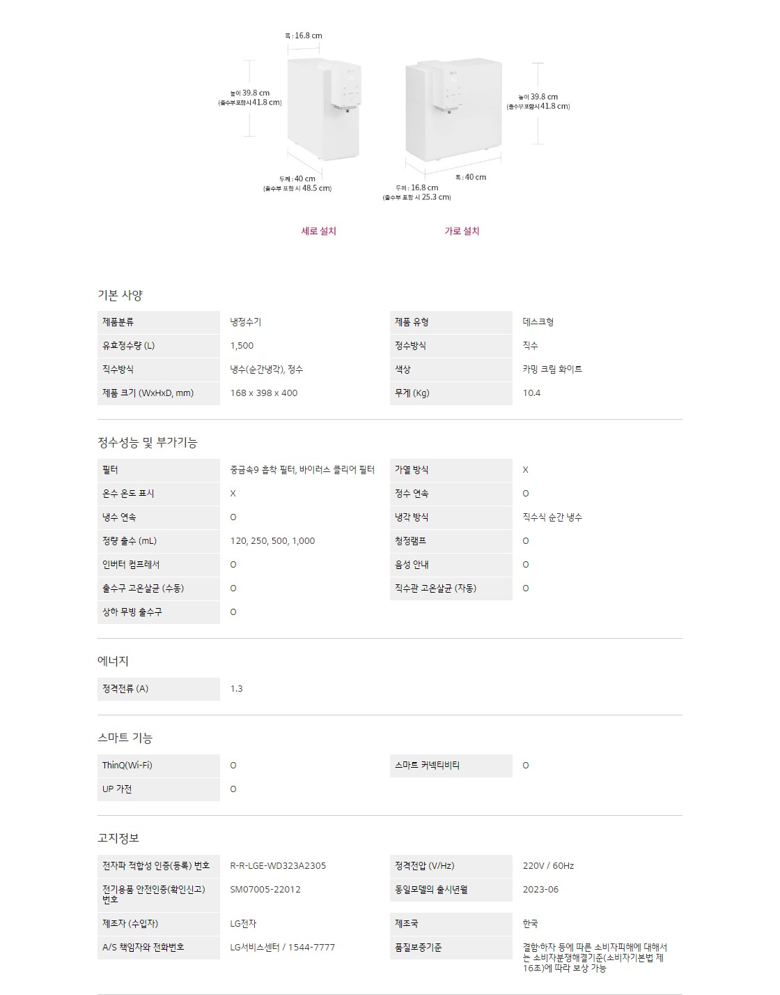 LG 퓨리케어 오브제컬렉션 정수기(맞춤 출수, 냉정)
