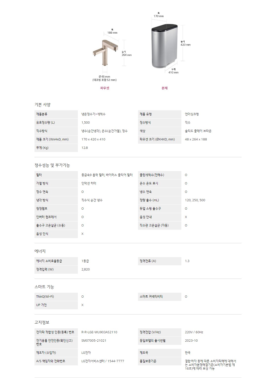 LG 퓨리케어 오브제컬렉션 정수기(듀얼, 냉온정)