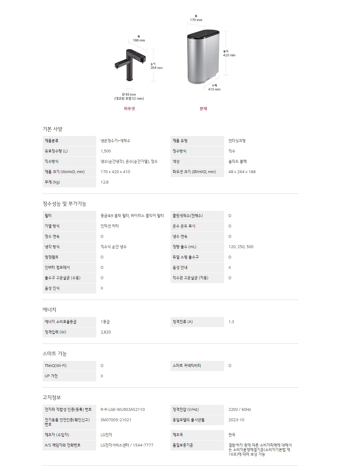LG 퓨리케어 오브제컬렉션 정수기(듀얼, 냉온정)