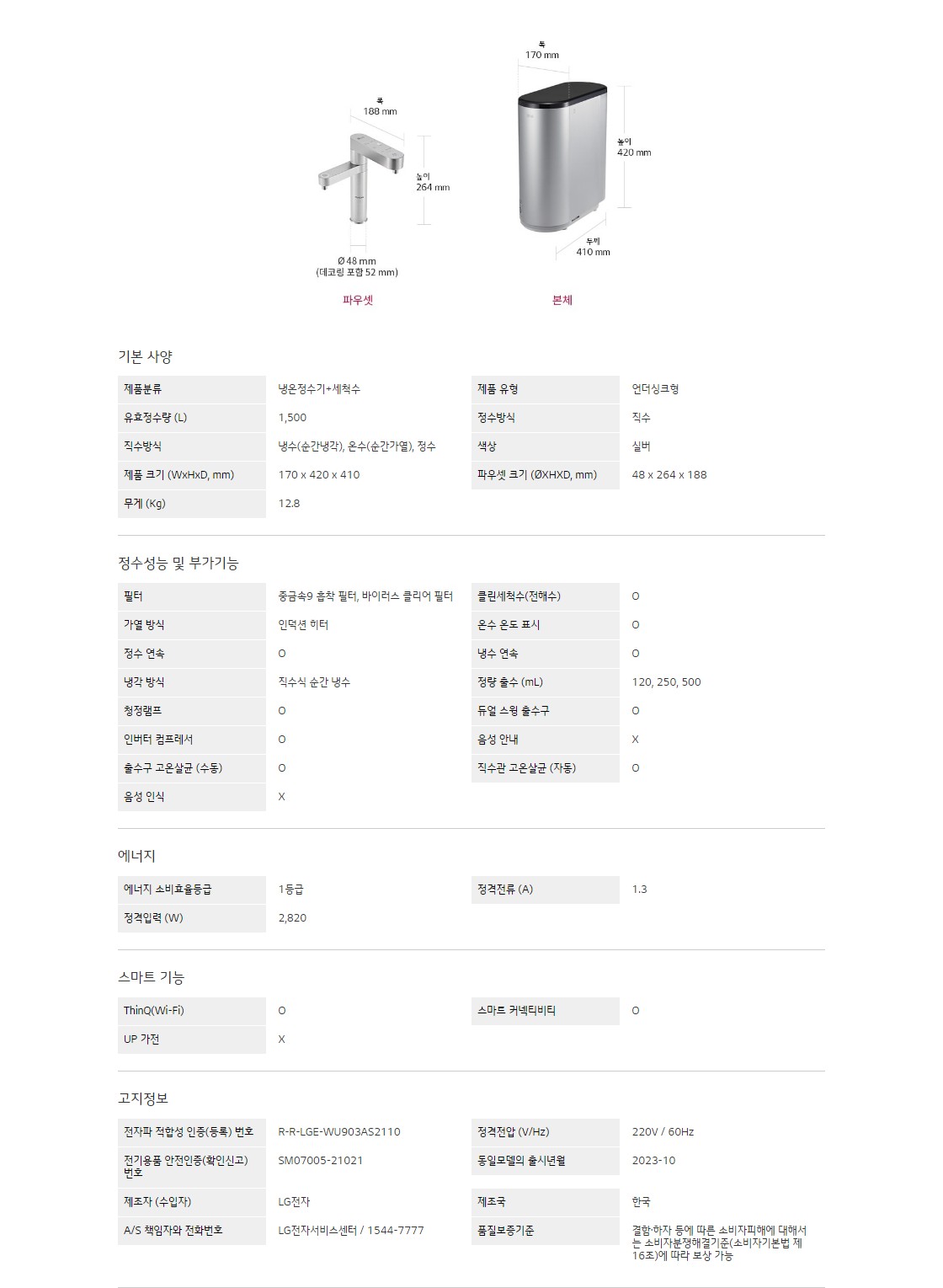 LG 퓨리케어 정수기(듀얼, 냉온정)
