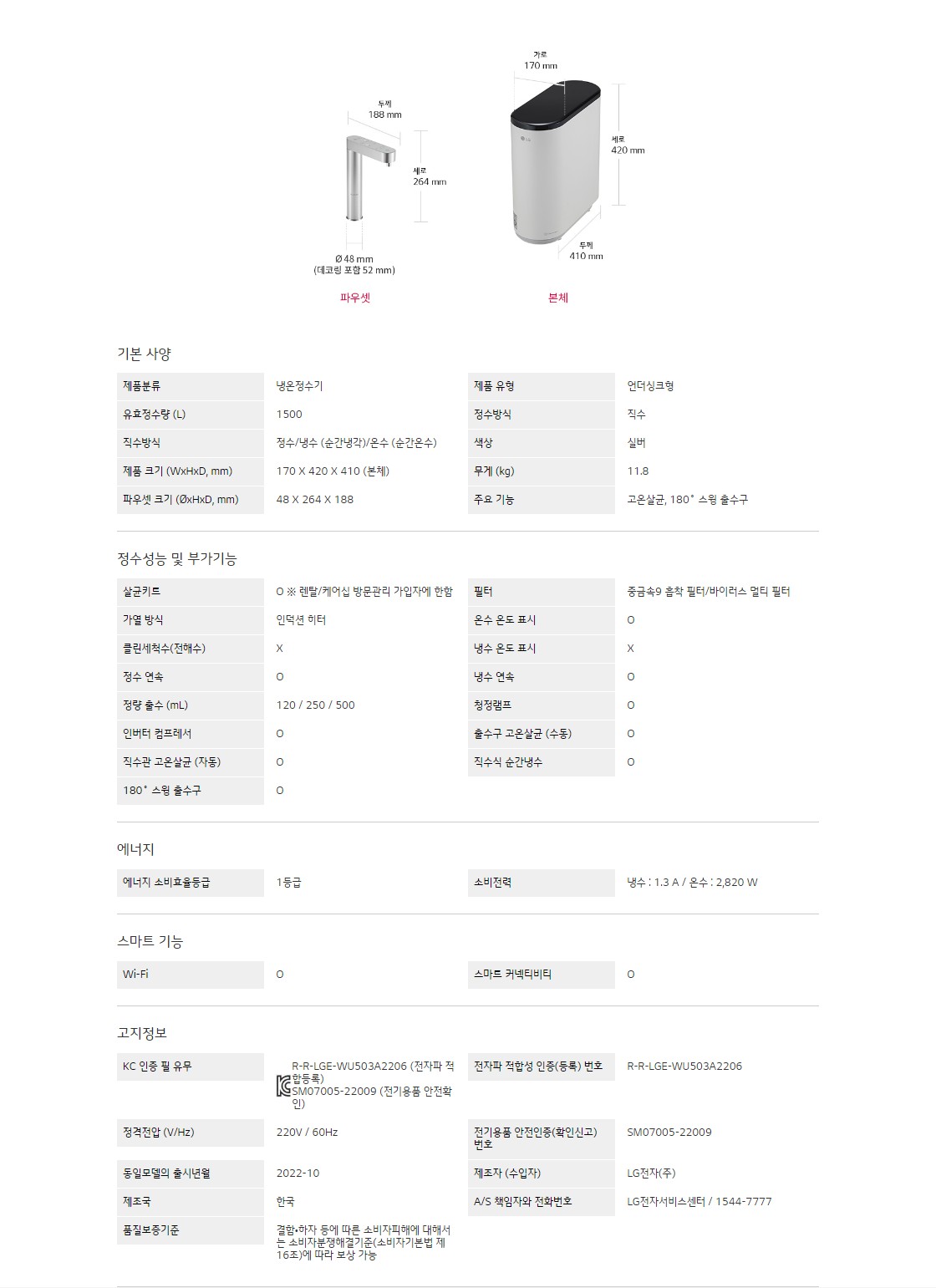 LG 퓨리케어 정수기(빌트인, 냉온정)
