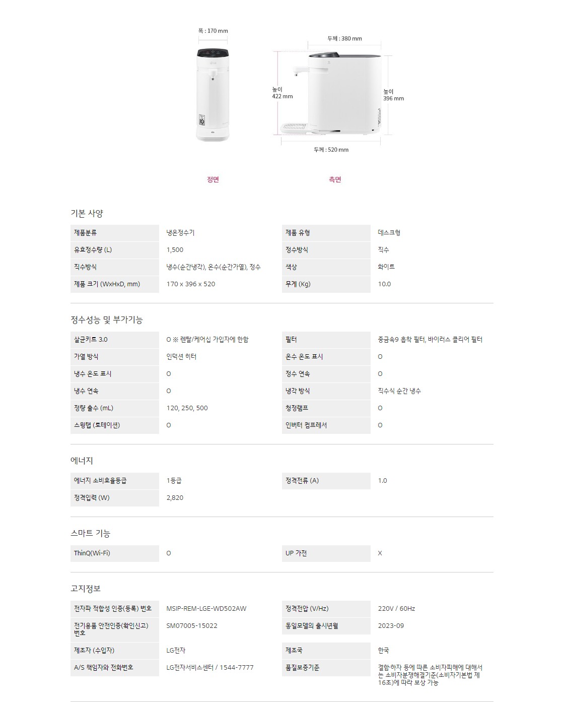 [단종]LG 퓨리케어 정수기(스윙, 냉온정)