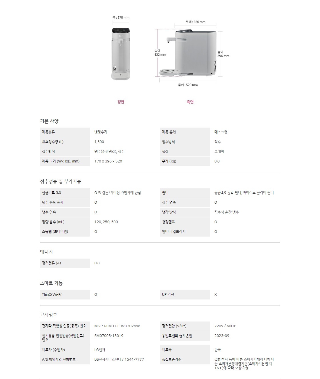 [단종]LG 퓨리케어 정수기(스윙,냉정)