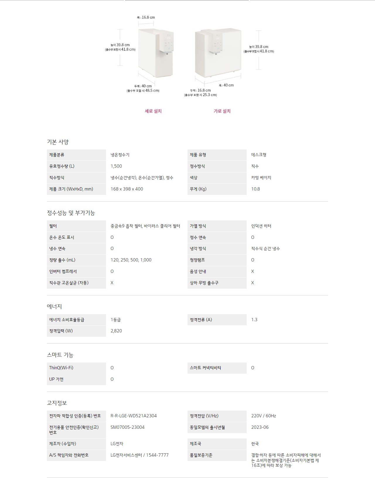 LG 퓨리케어 오브제컬렉션 정수기(맞춤 lite, 냉온정, 방문)