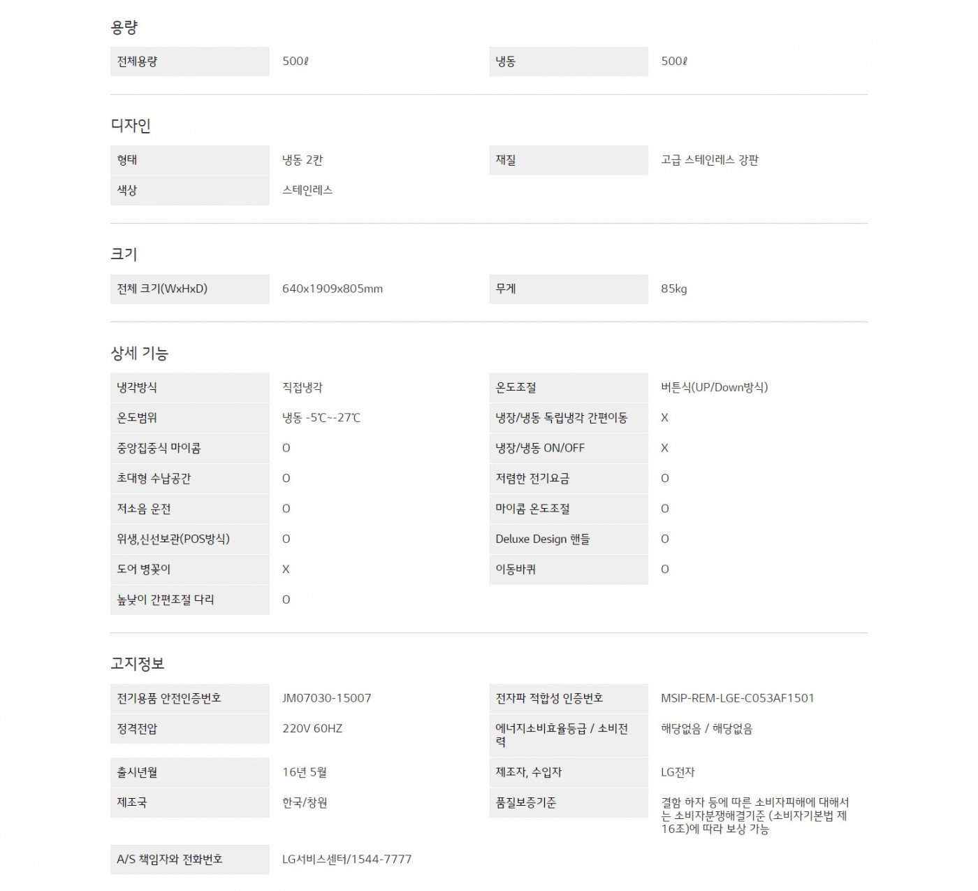 냉동 : 500ℓ
