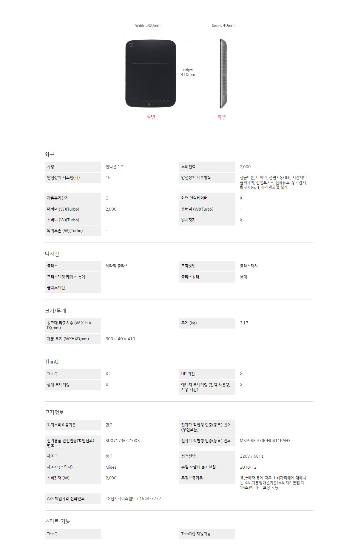 사양 : 인덕션 1구