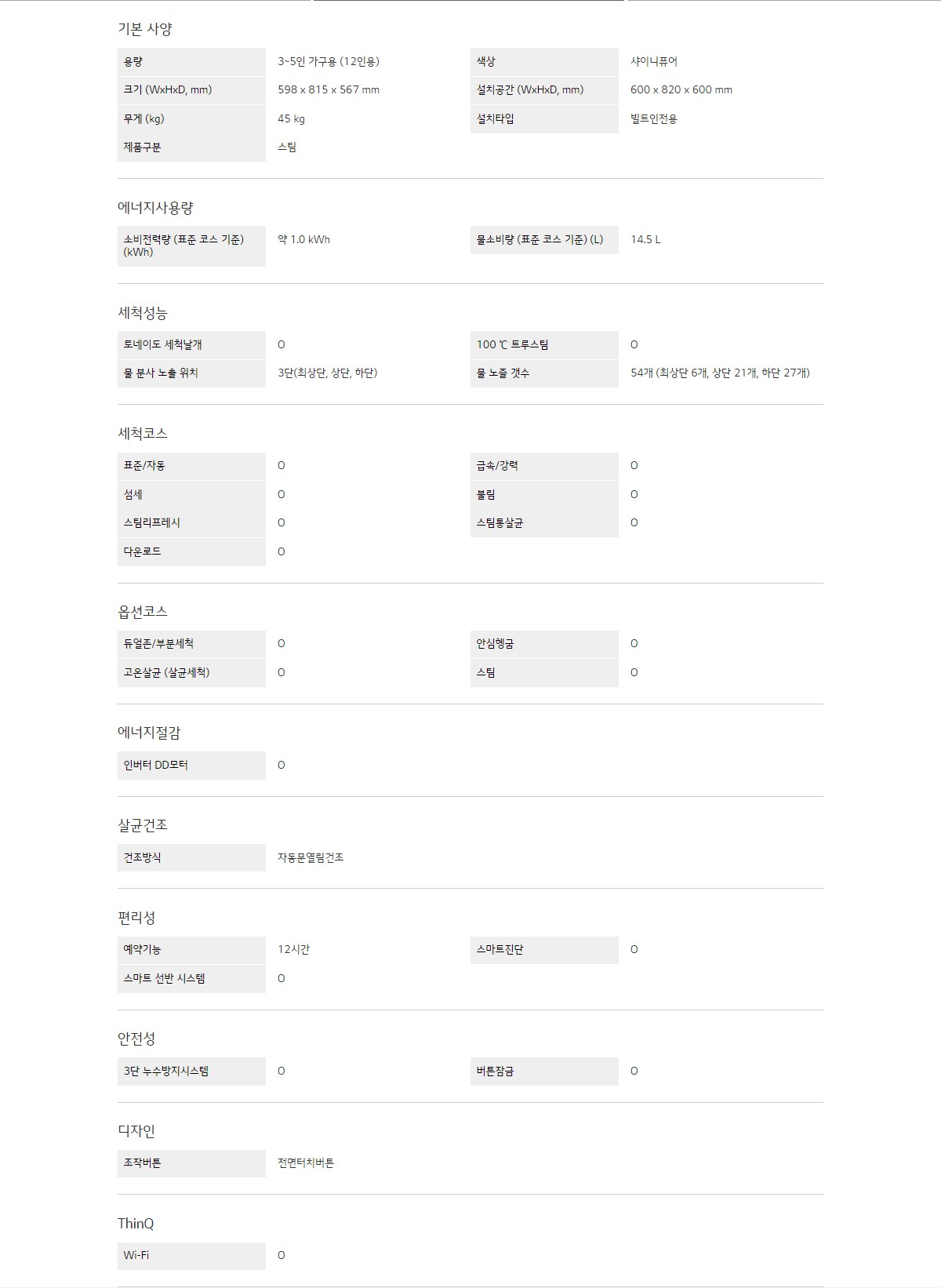 용량 : 3~5인 가구용 (12인용)