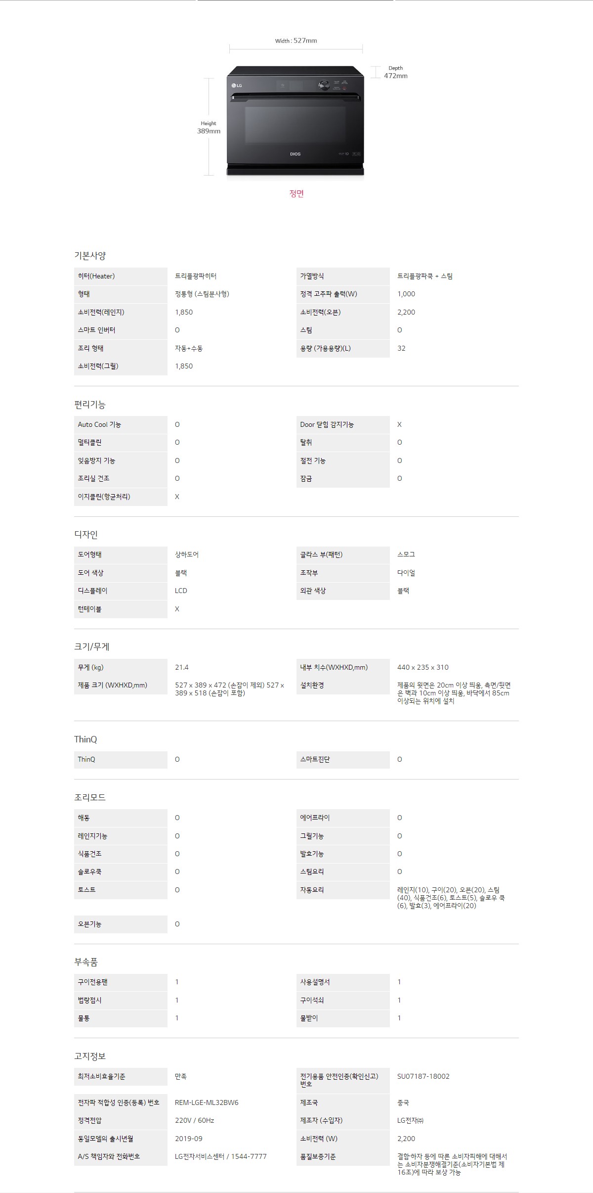제품 크기(WXHXD) : 527 X 389 X 472mm(손잡이 제외)