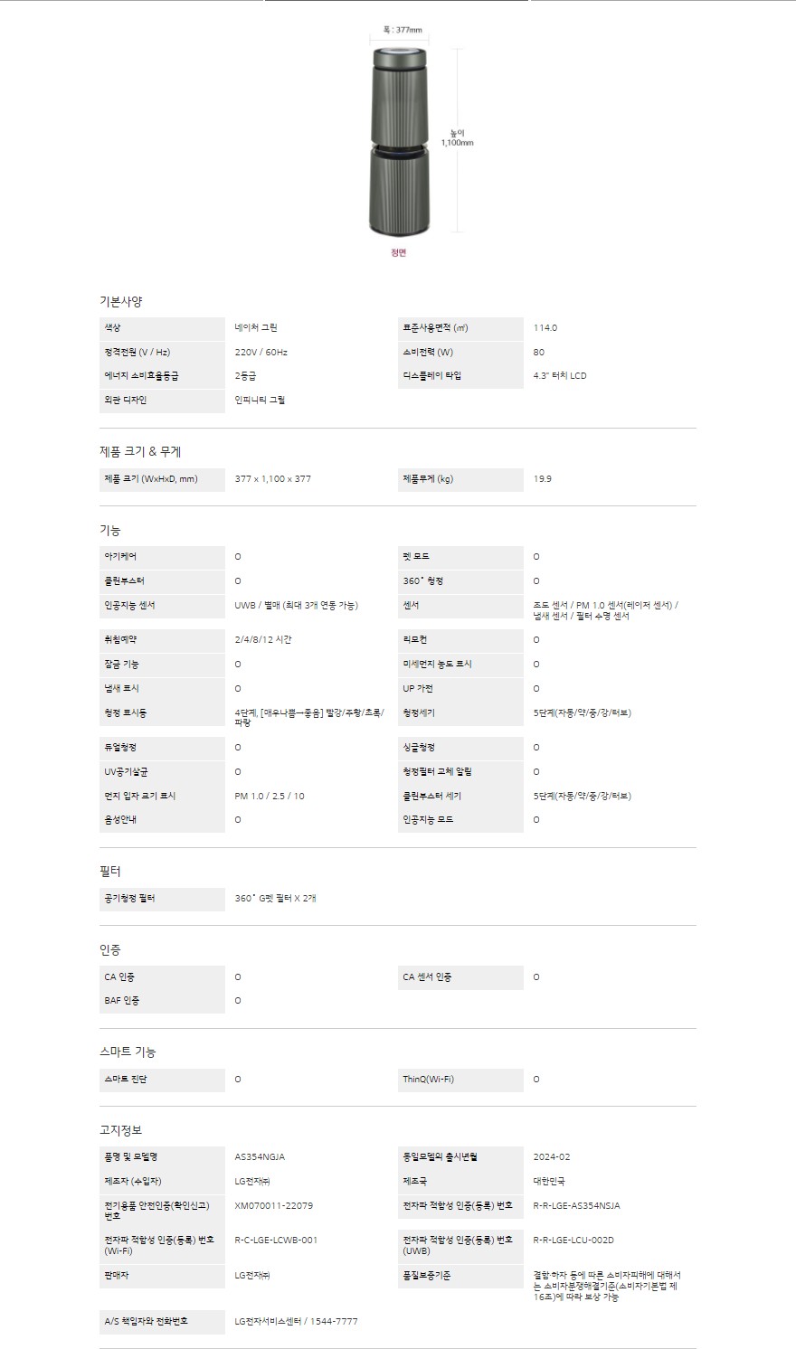 LG 퓨리케어 오브제컬렉션 360˚ 공기청정기 UV살균 (G 펫필터)