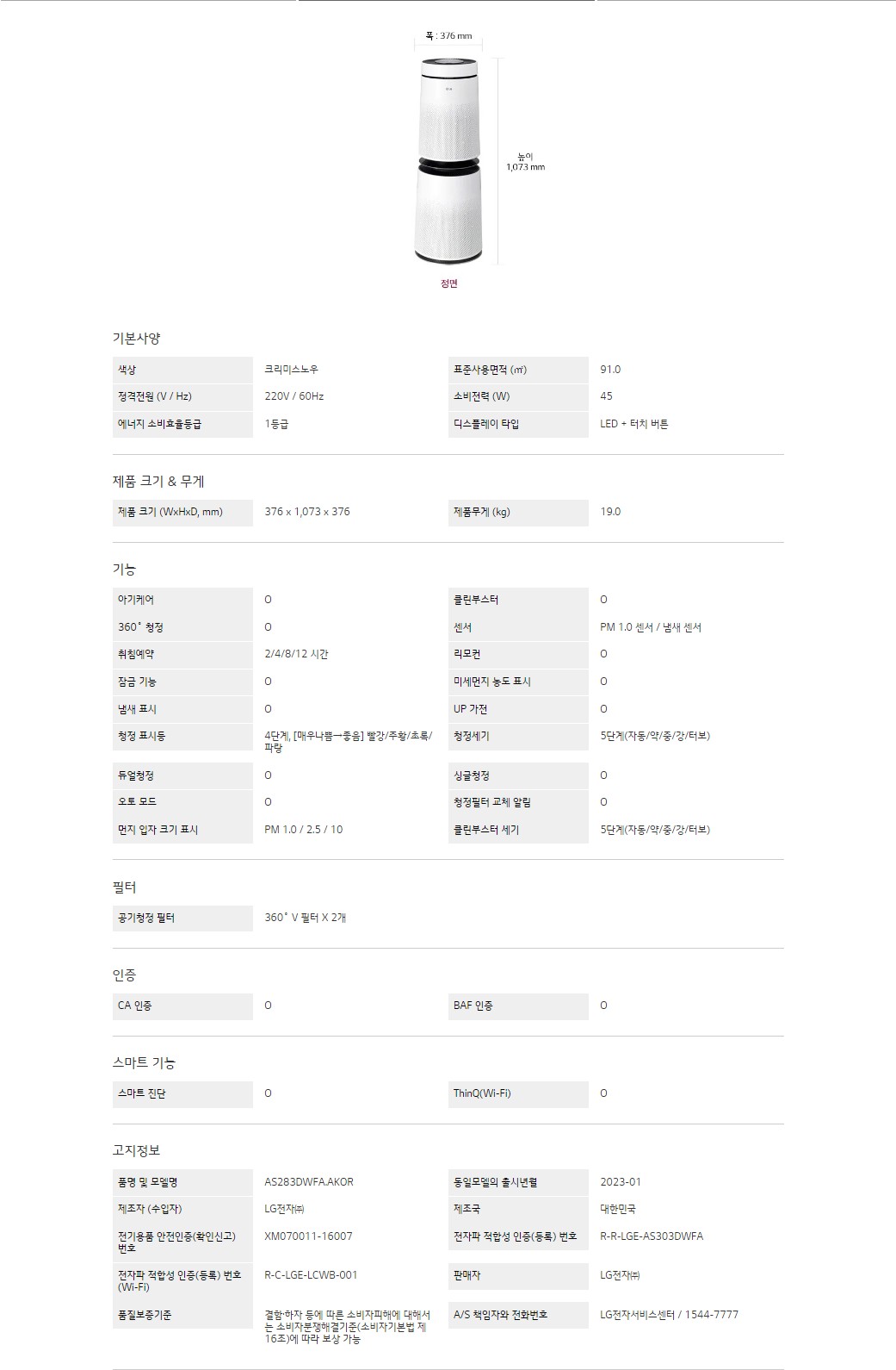 LG 퓨리케어 360˚ 공기청정기 플러스