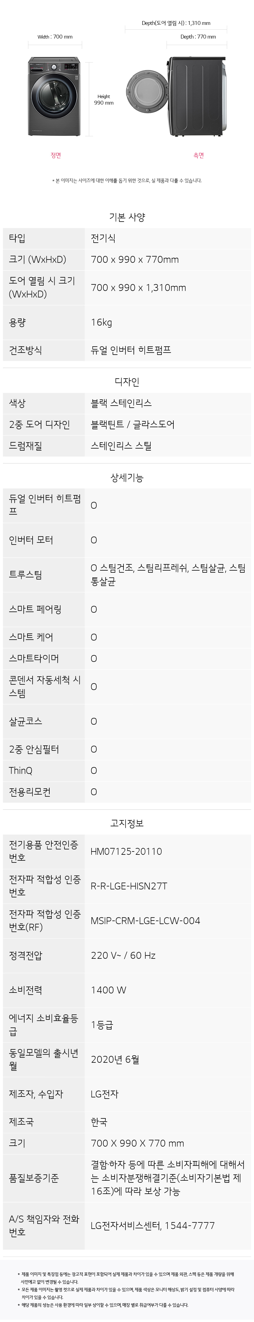 LG TROMM 건조기 STEAM ThinQ