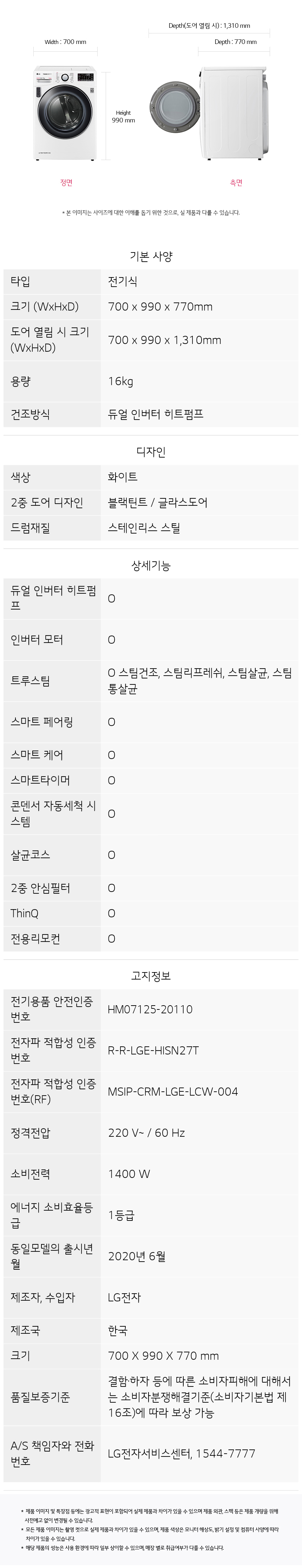 LG TROMM 건조기 STEAM ThinQ