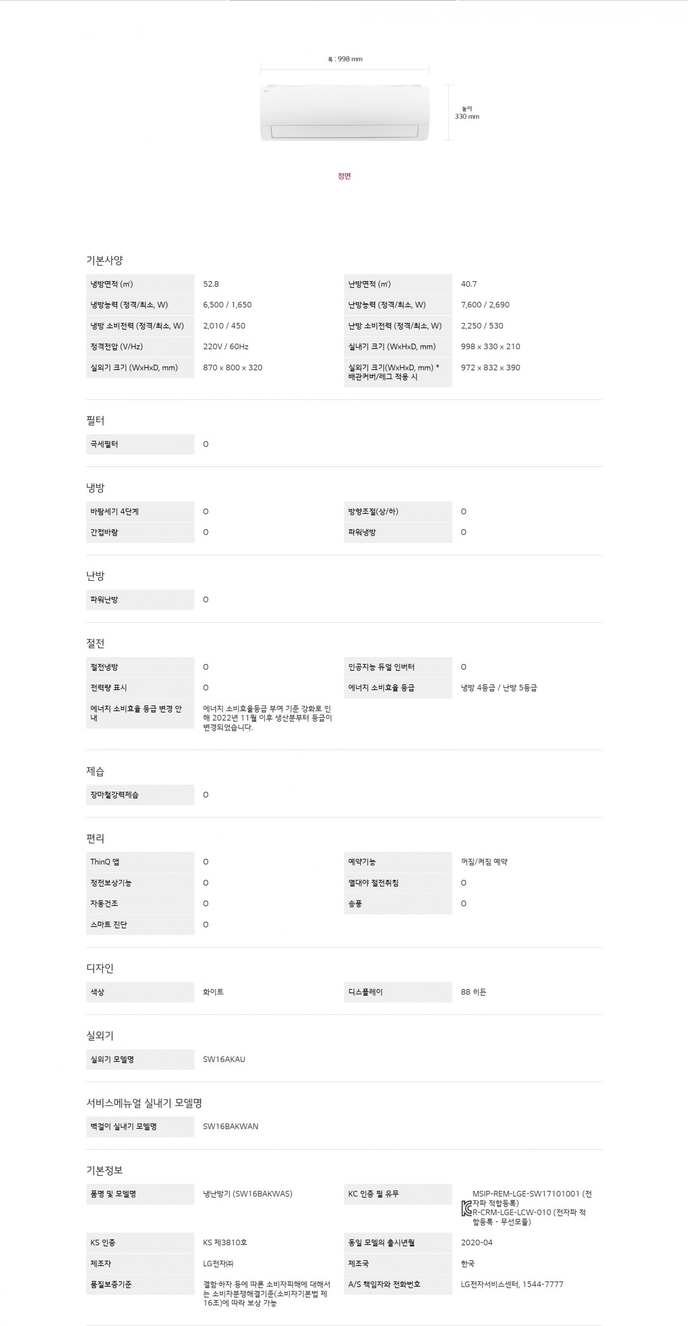 LG 휘센 벽걸이에어컨 (냉난방)