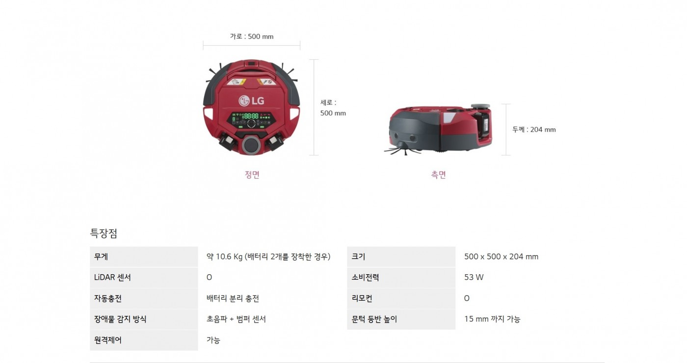 무게 :약 10.6 Kg (배터리 2개를 장착한 경우)