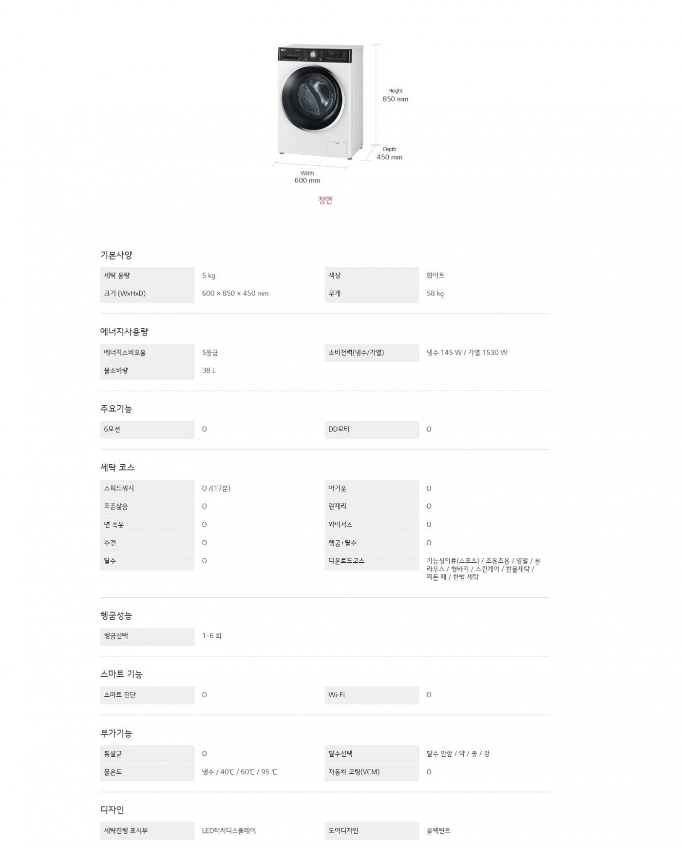 크기 (WxHxD) : 600 × 850 × 450 mm