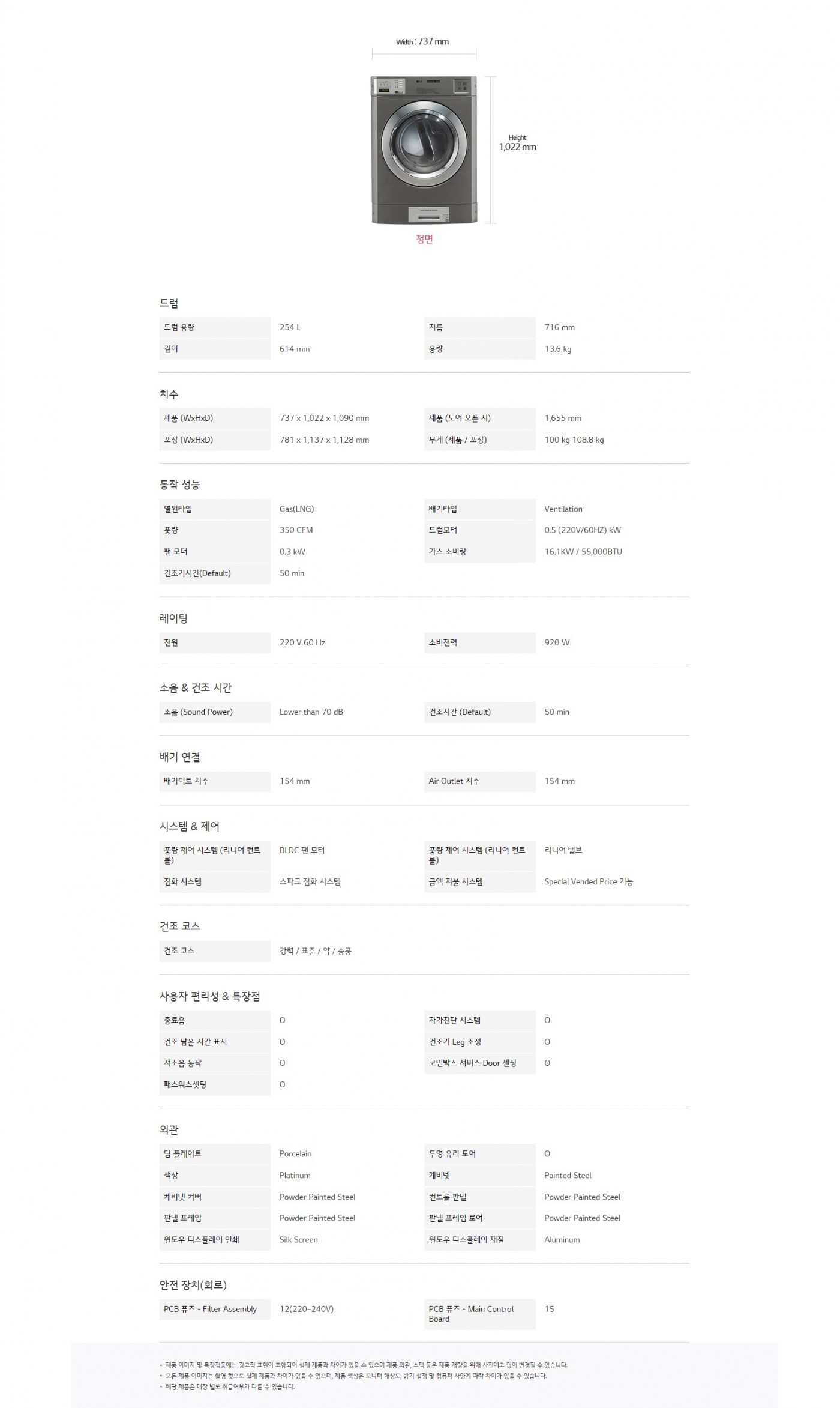 제품 (WxHxD) : 737 x 1,022 x 1,090 mm