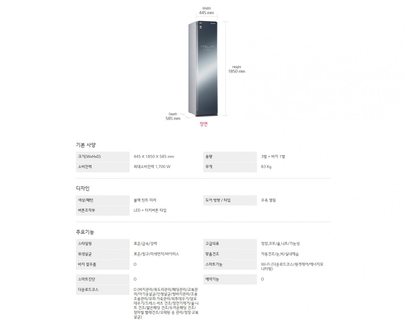 크기(WxHxD) : 445 X 1850 X 585 mm