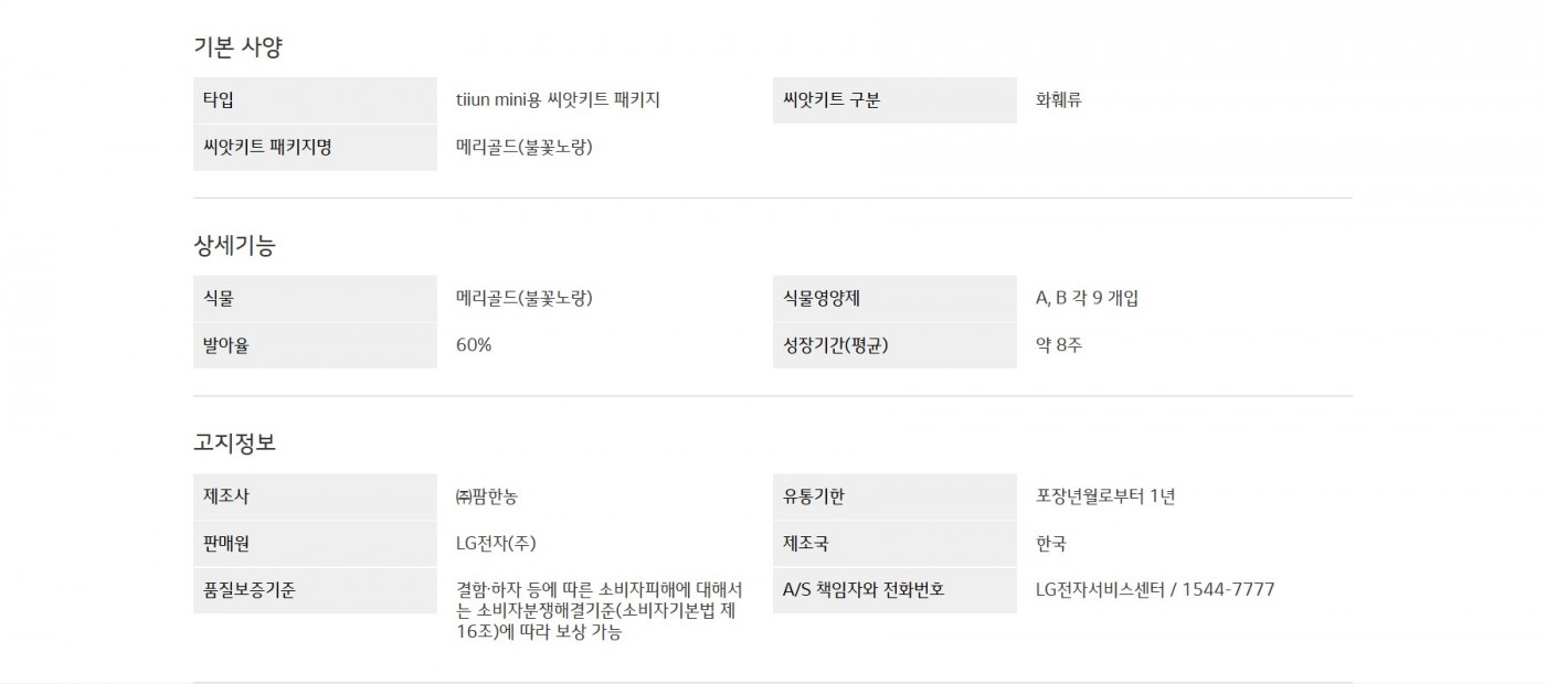 LG 틔운 미니용 씨앗키트 패키지 (메리골드 불꽃노랑)