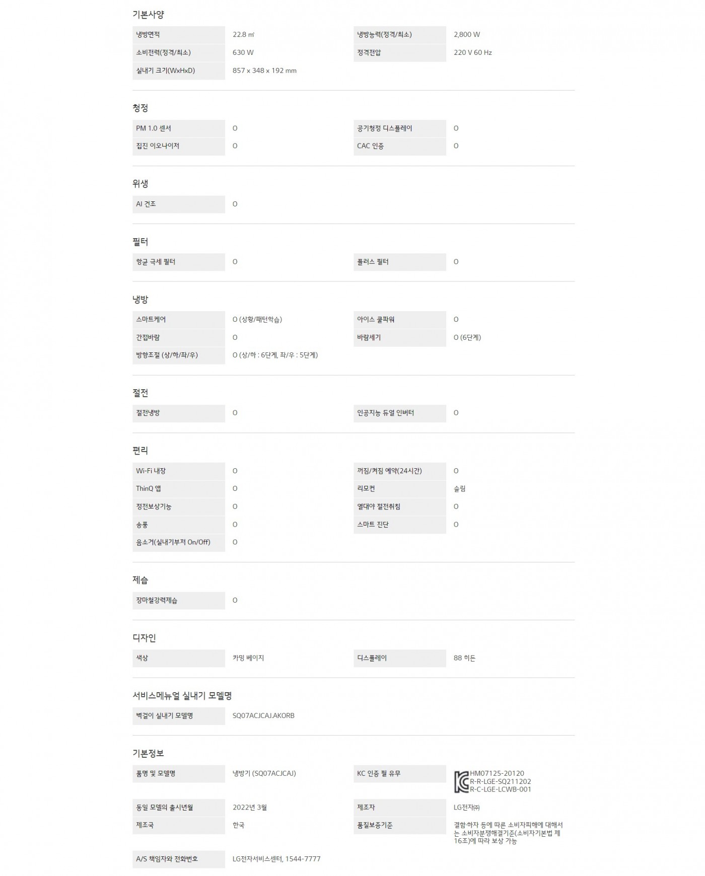 냉방면적 : 22.8 ㎡