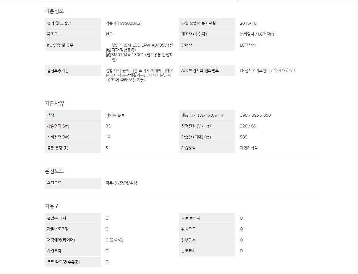 LG 퓨리케어 자연기화 가습기